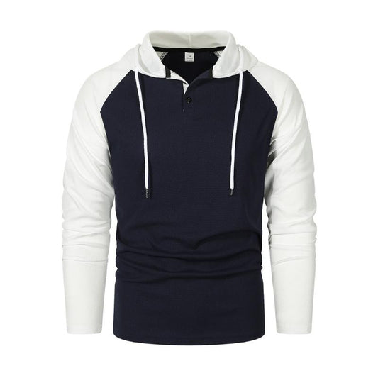 Afslappet langærmet T-shirt i vaffelstrik til mænd med hætte