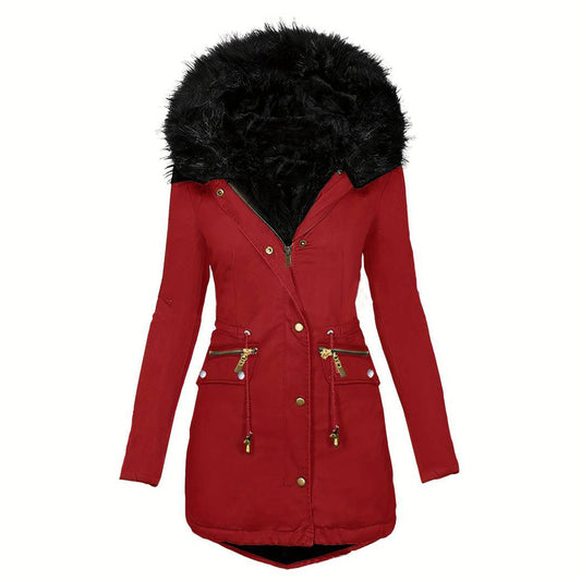 Vinterpolstret hættetrøje til kvinder med lommer
