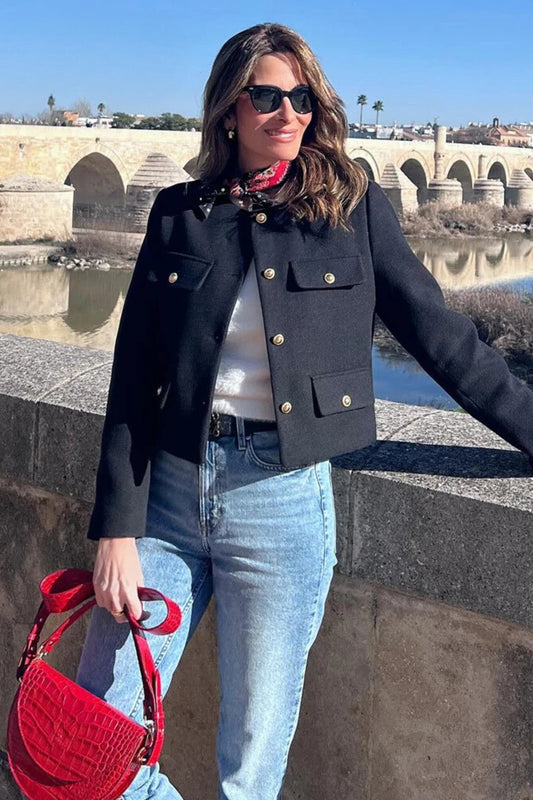 Trendy kort blazer med knapper til kvinder