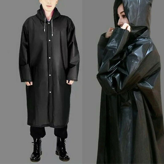 Vandtæt lang mackintosh til mænd med hætte og trykknapper