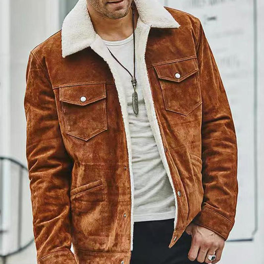 Hyggelig, varm herrejakke i polarfleece af ruskind med stående krave