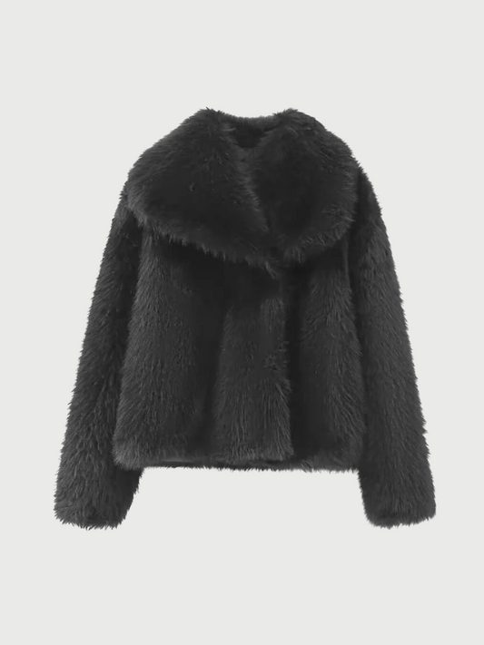 Bourgognefarvet jakke i imiteret pels til kvinder