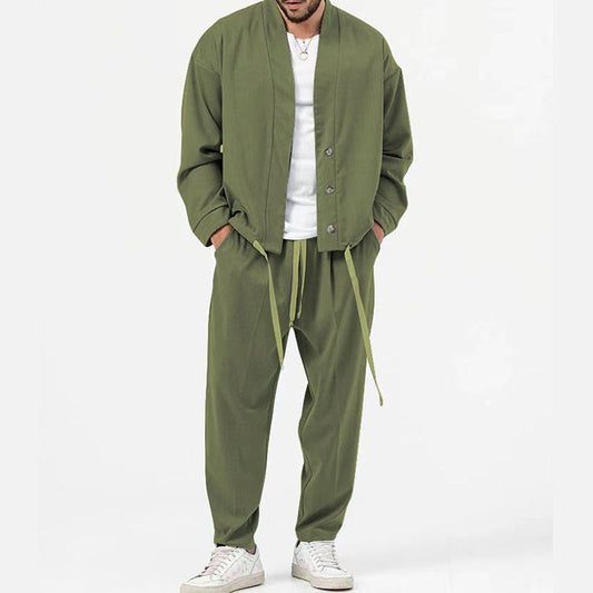Urban trend jakke med knapper og løse bukser 2-delt sæt til mænd