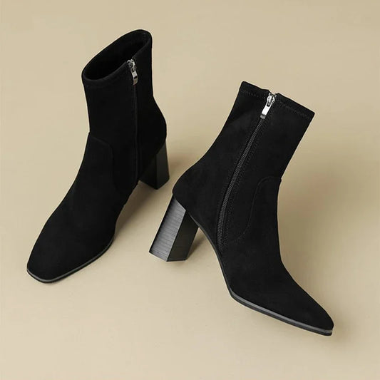 Moderne ankelstøvler med høj hæl og lynlås til kvinder