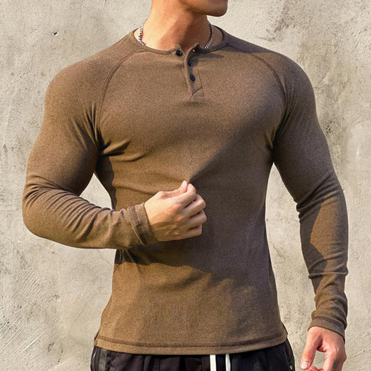 Langærmet, elastisk slim-fit T-shirt til mænd