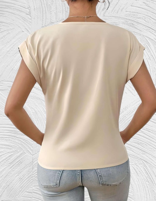 Vintage t-shirt med rund hals og flæsekant til kvinder