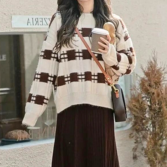 Trendy stribet sweater med dråbeformede skuldre til kvinder