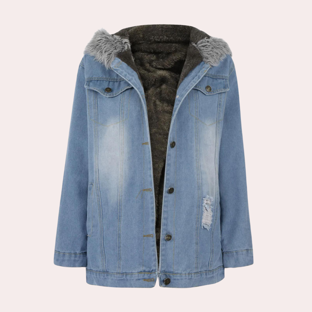 Med denne denimjakke vil du føle dig både afslappet og chic. Den bløde pelskrave giver dig en luksuriøs fornemmelse, mens det robuste denimmateriale sikrer, at du er klar til enhver dag, hvad enten du er ude på en frisk gåtur eller nyder en aften ude. Du vil føle dig varm, stilfuld og klar til alt.