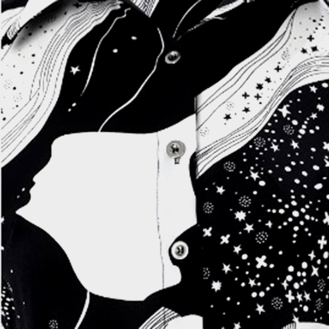 Opgrader din garderobe med denne stilfulde skjorte, der kombinerer klassisk elegance med et moderne design. De smukke sort-hvide kontraster og det unikke mønster gør denne skjorte til et statement-piece, der passer perfekt til både arbejde og sociale arrangementer.