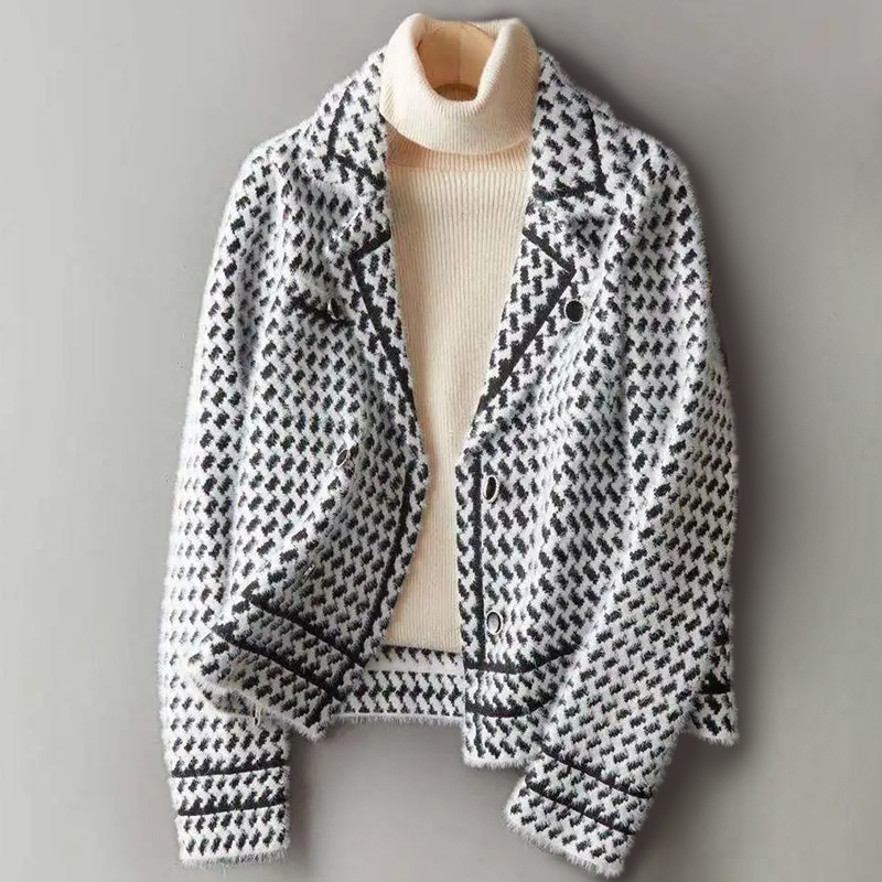 Den er lavet af en blød, ulden blanding, har et unikt print og passer perfekt til rullekraver og bukser.