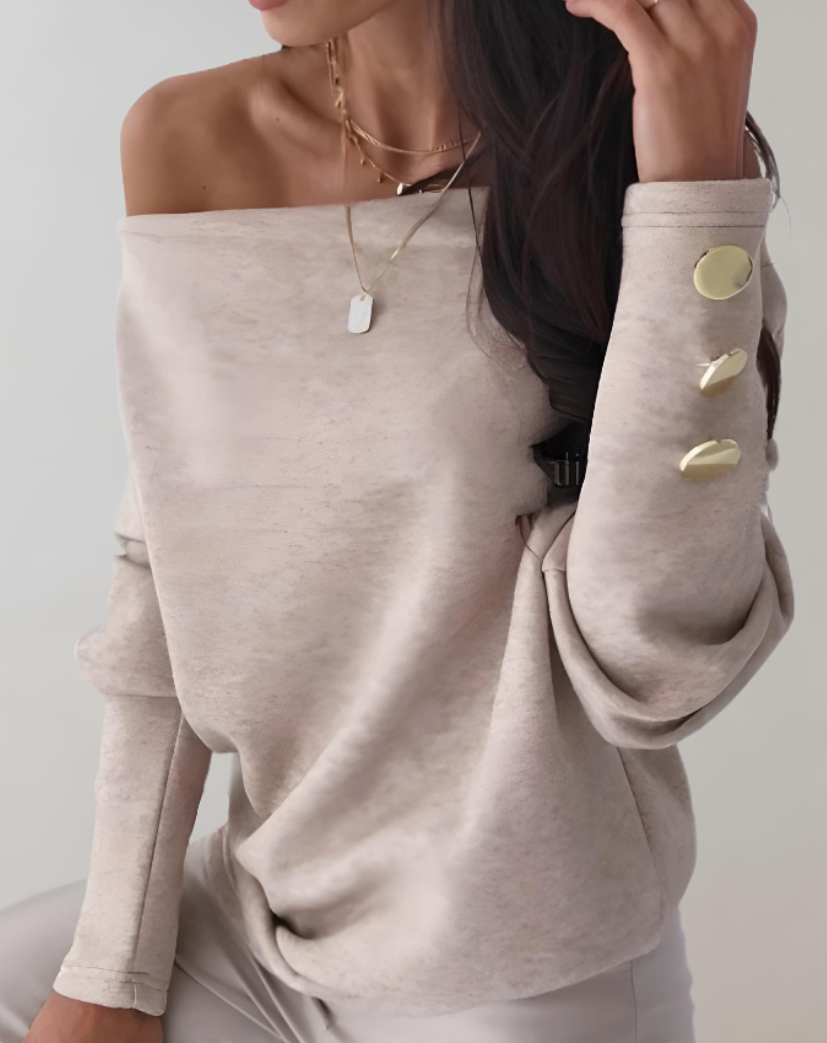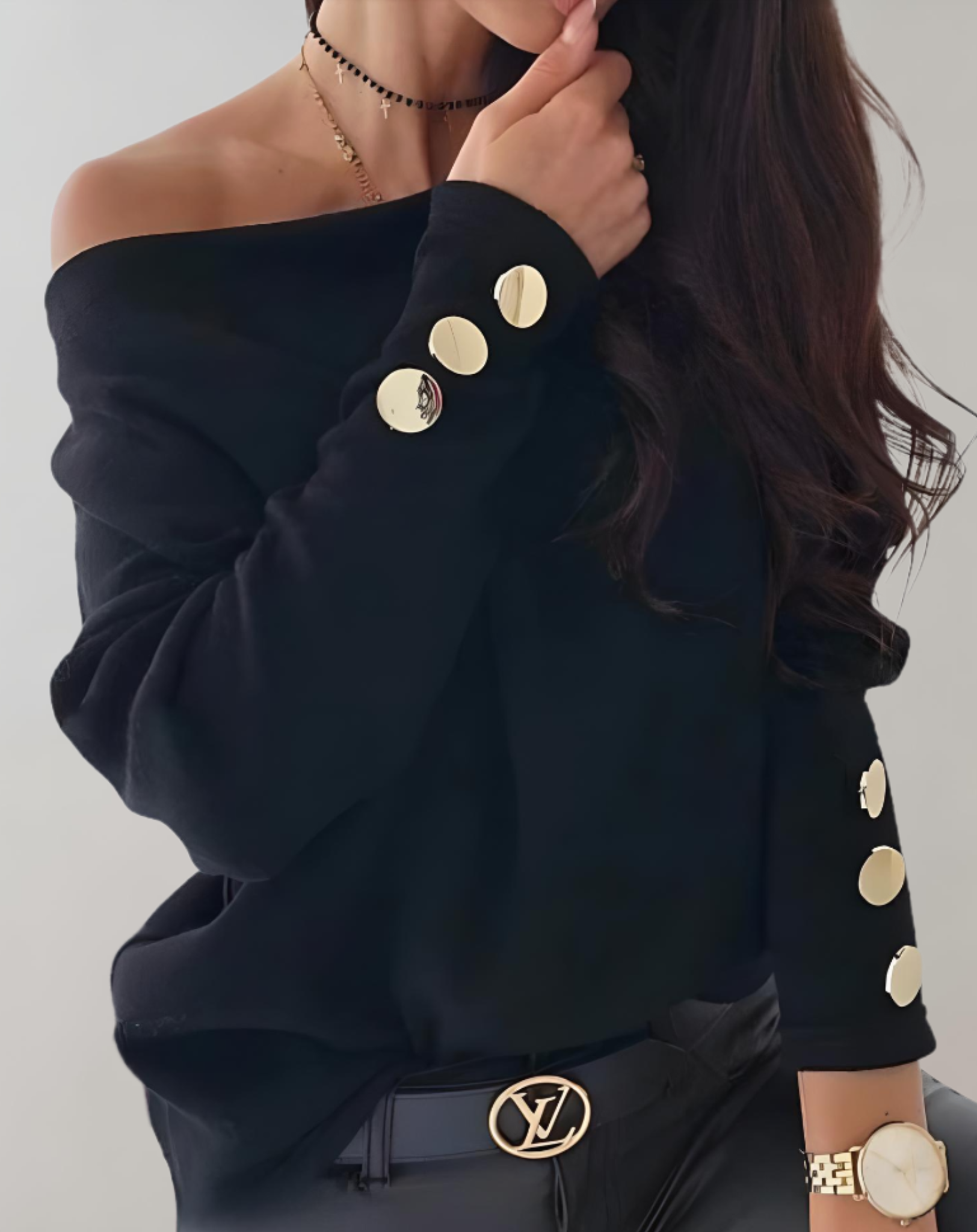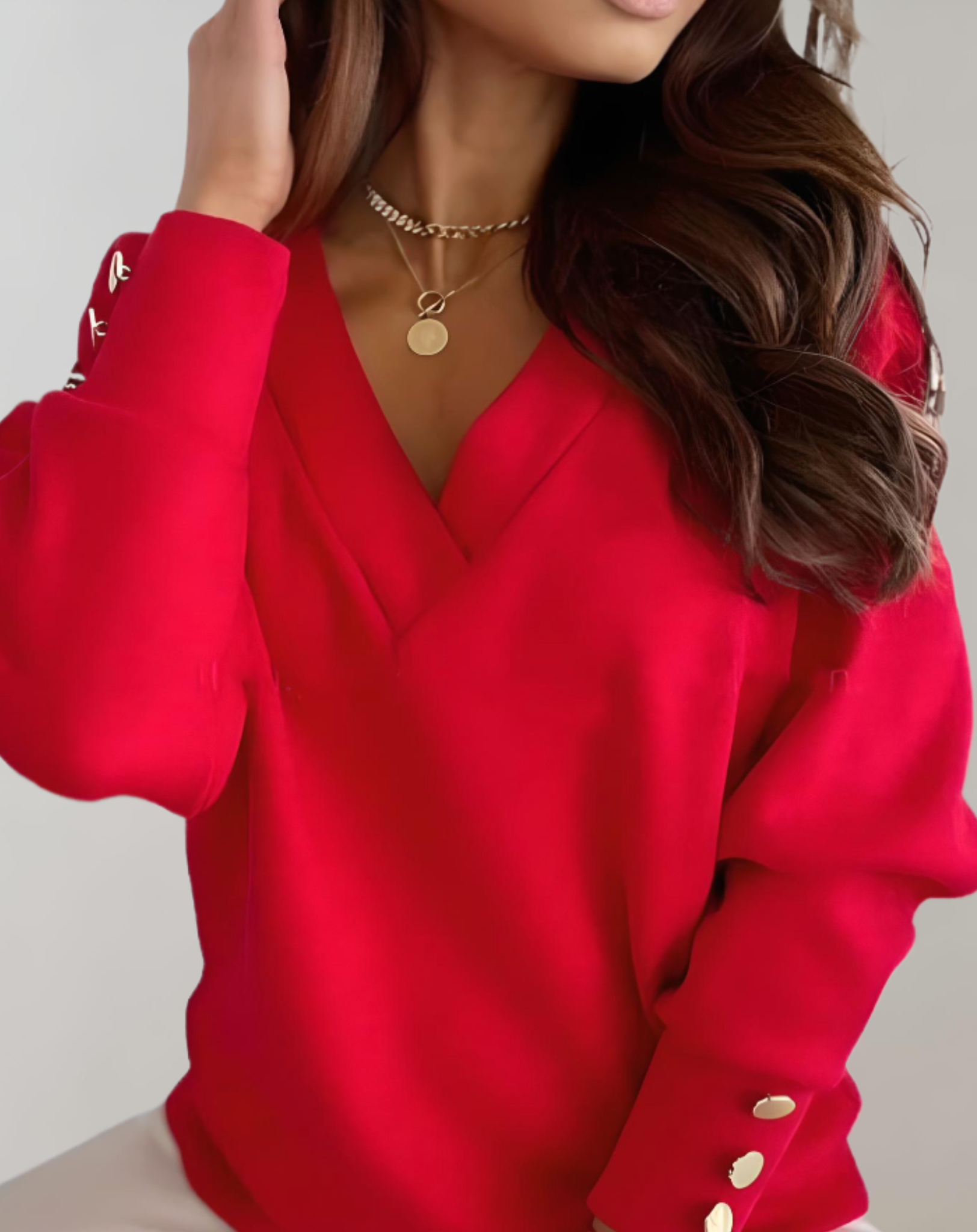 Enkel trøje med v-hals og knapper på ærmet til kvinder