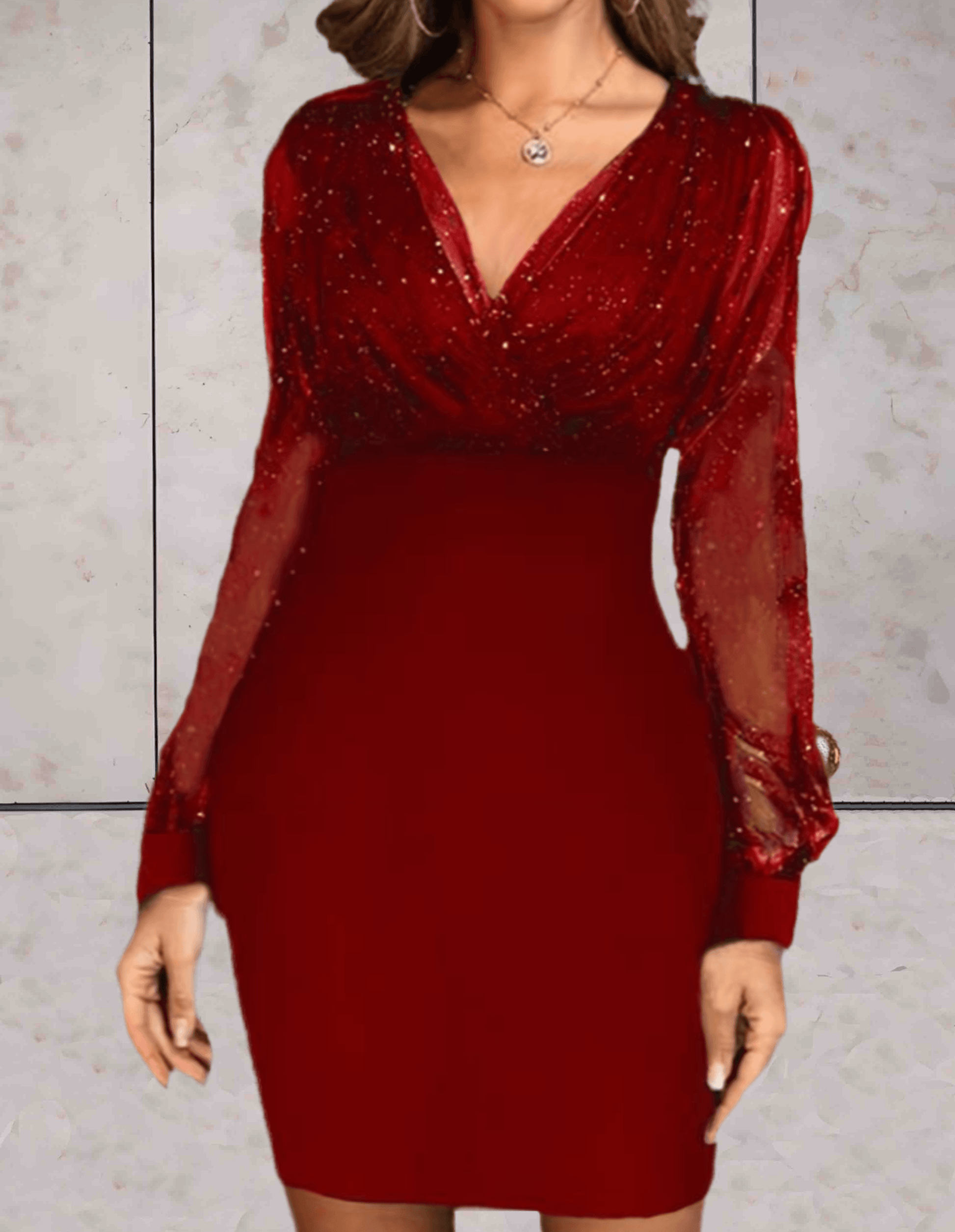 Føj glamour til din garderobe med denne smukke glitter-festkjole, perfekt til enhver festlig anledning! Med en elegant pasform og skinnende finish er denne kjole skabt til at få dig til at skille dig ud og føle dig fantastisk. De lange ærmer giver en sofistikeret kant, mens den tætsiddende silhuet fremhæver dine former på den bedste måde.