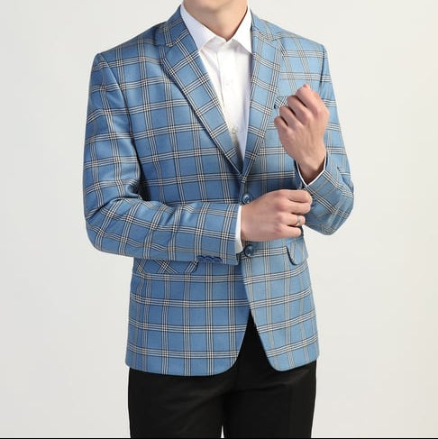 Oplev raffineret stil og komfort med denne ternede slim fit blazer til mænd