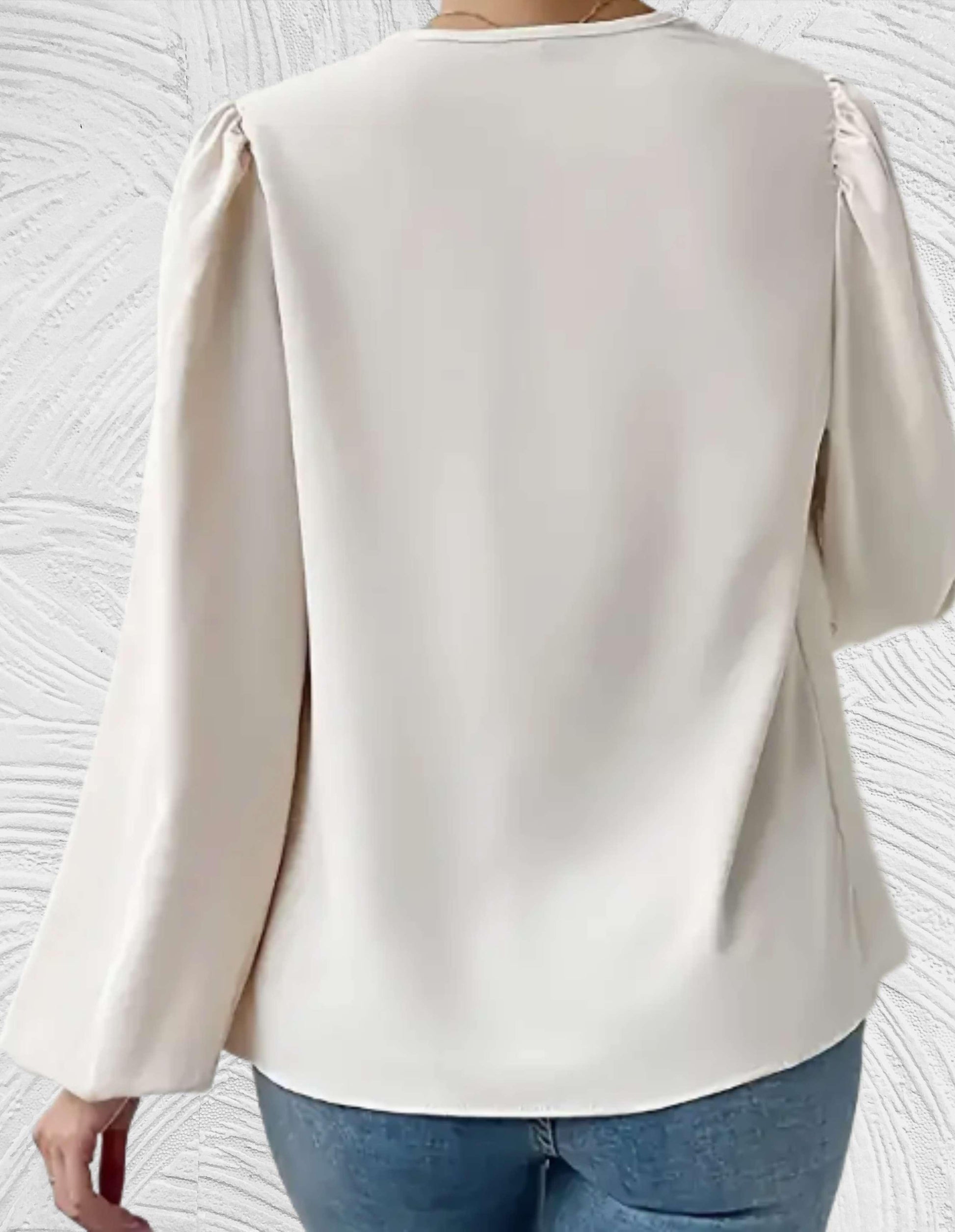 Hvid top med lange pufærmer og wrap-around-design til kvinder