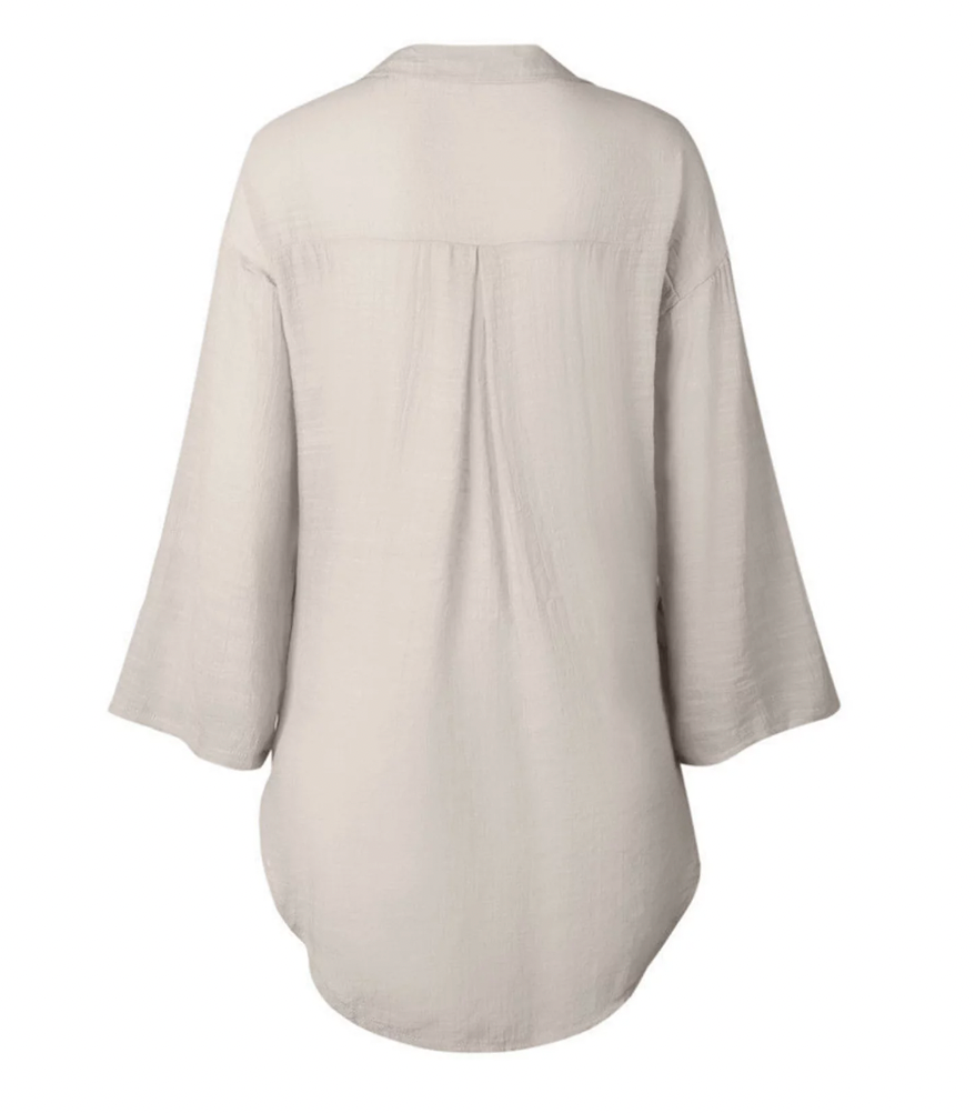 Denne irregulære bluse med snørebånd er mere end blot en top – det er et statement-stykke, der løfter din stil. Det innovative design og de elegante detaljer gør den til et unikt valg, der passer perfekt til både hverdagsbrug og særlige anledninger. Skil dig ud fra mængden og udtryk din personlige stil med denne smukke bluse.