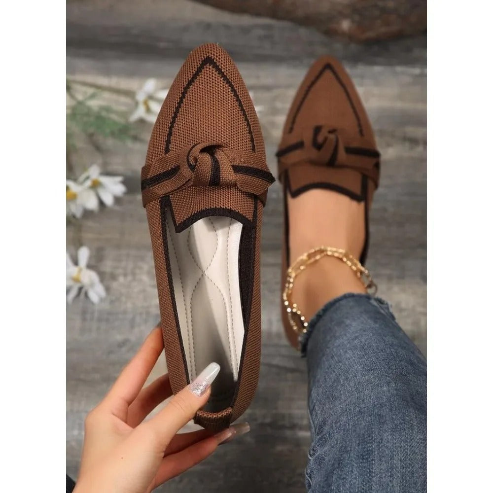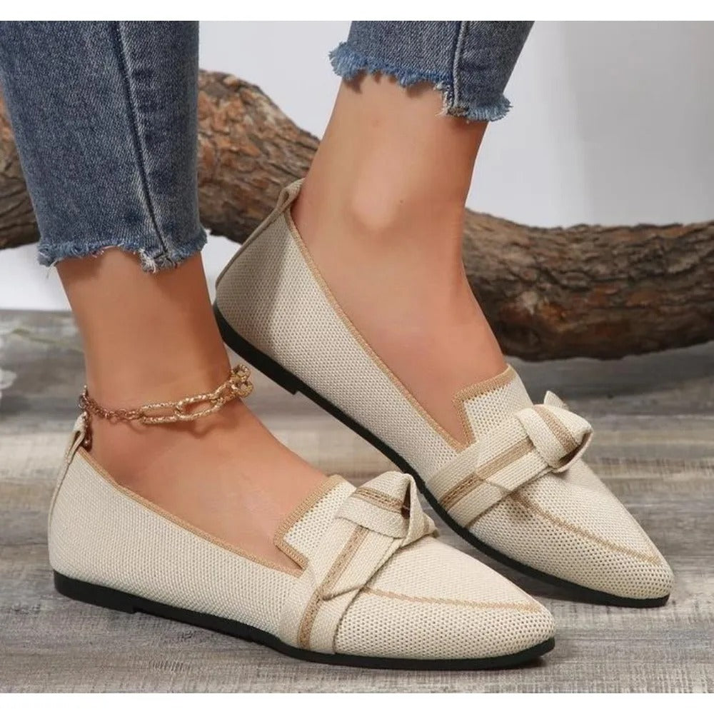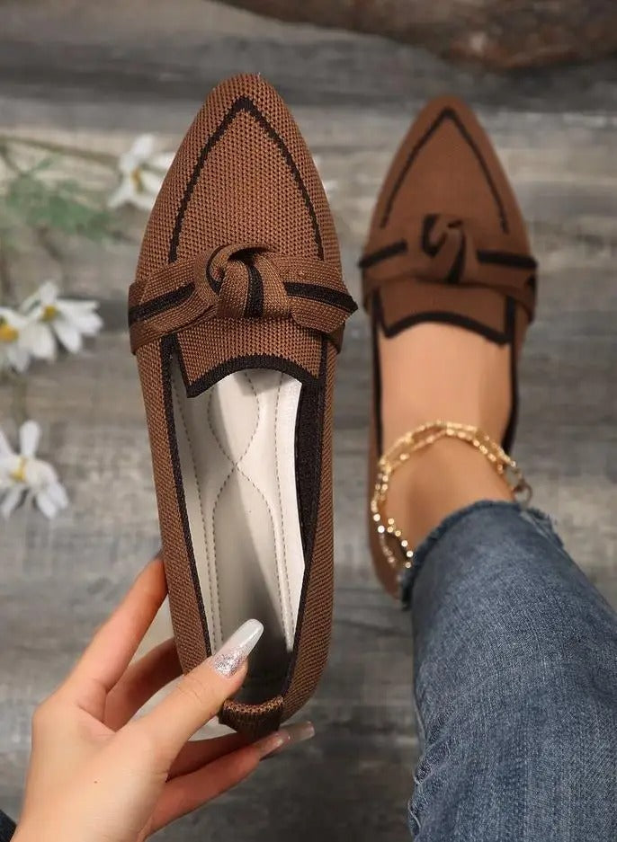 Med Knudemønster spidse dukkesko får du et stilfuldt look uden at gå på kompromis med komforten. Disse sko er designet til at forkæle dine fødder med deres ortopædiske fodseng og åndbare lærredsmaterialer. Knudemønster spidse dukkesko er perfekte til varme dage og giver ikke kun komfort, men også et moderigtigt touch til ethvert outfit.
