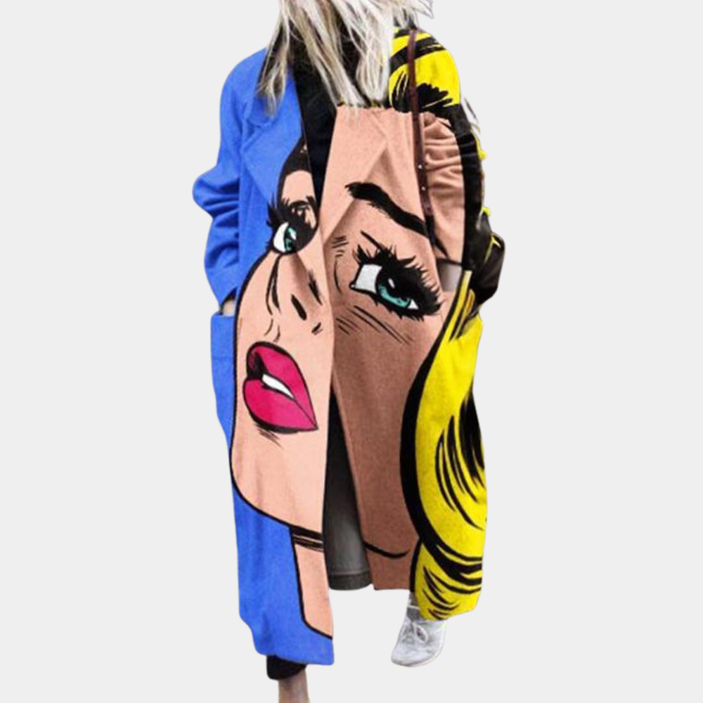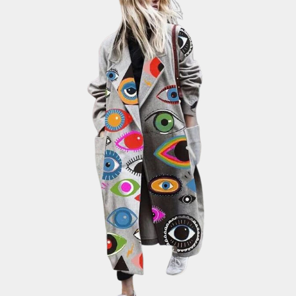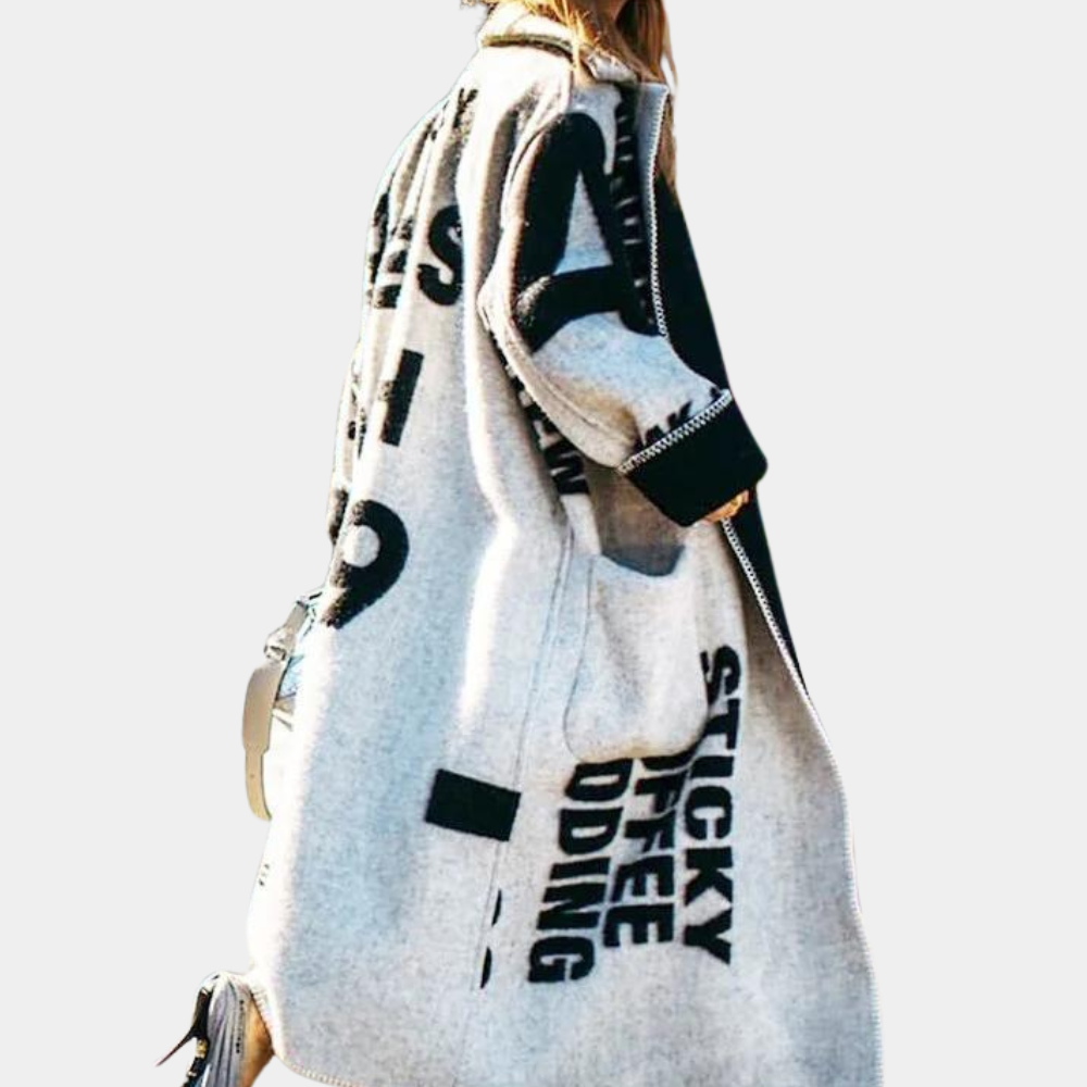 Gør vinteren stilfuld og kunstnerisk – denne lange frakke er det perfekte valg for kvinder, der elsker at udtrykke deres kreativitet gennem deres påklædning.