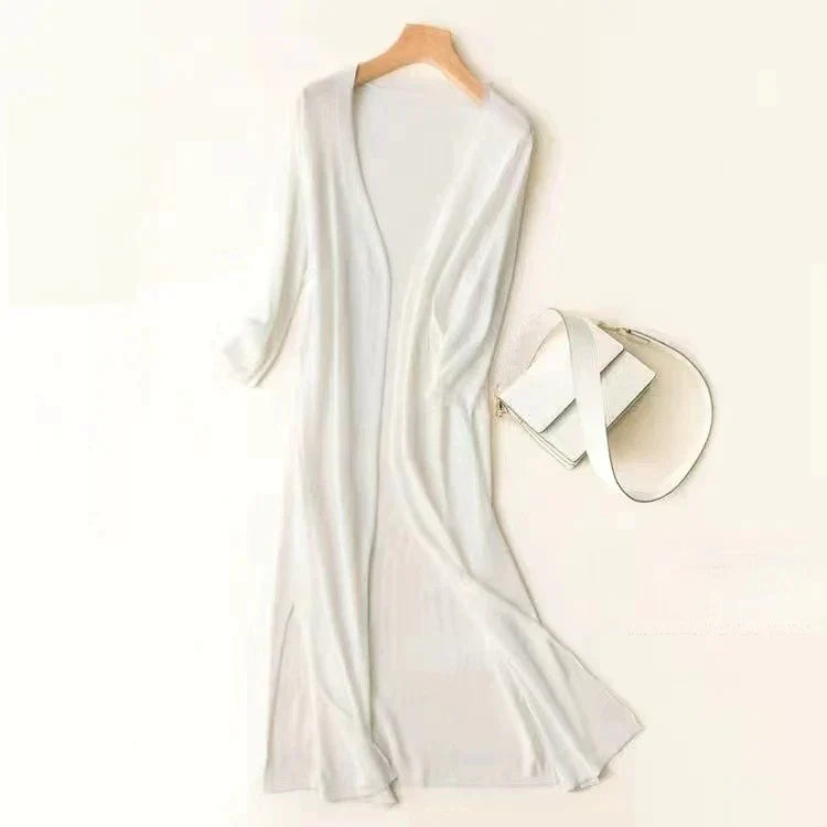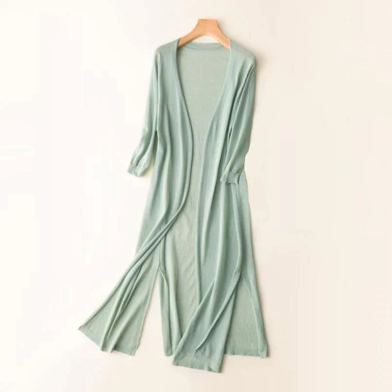 🌸 Lang Cardigan med Letvægtsudhulning - Elegance og Komfort i Perfekt Balance 🌸
