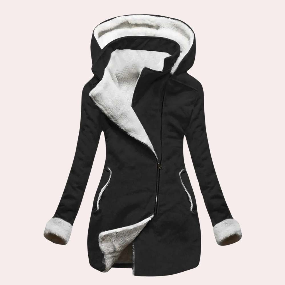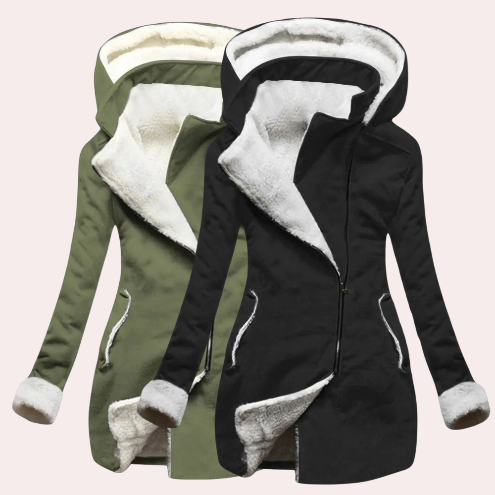 - Hætte for ekstra beskyttelse: Den plysbløde hætte i lammepels giver ekstra varme og stil, samtidig med at den beskytter dig mod kolde vinde og sne.