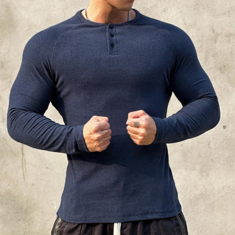 Opgrader din daglige garderobe med vores Elastiske Slim-Fit T-shirt med Lange Ærmer til Mænd. Dette stilfulde og komfortable T-shirt kombinerer et slankt silhuet med elastisk materiale, der følger kroppens bevægelser, hvilket giver den perfekte balance mellem pasform og bevægelsesfrihed.