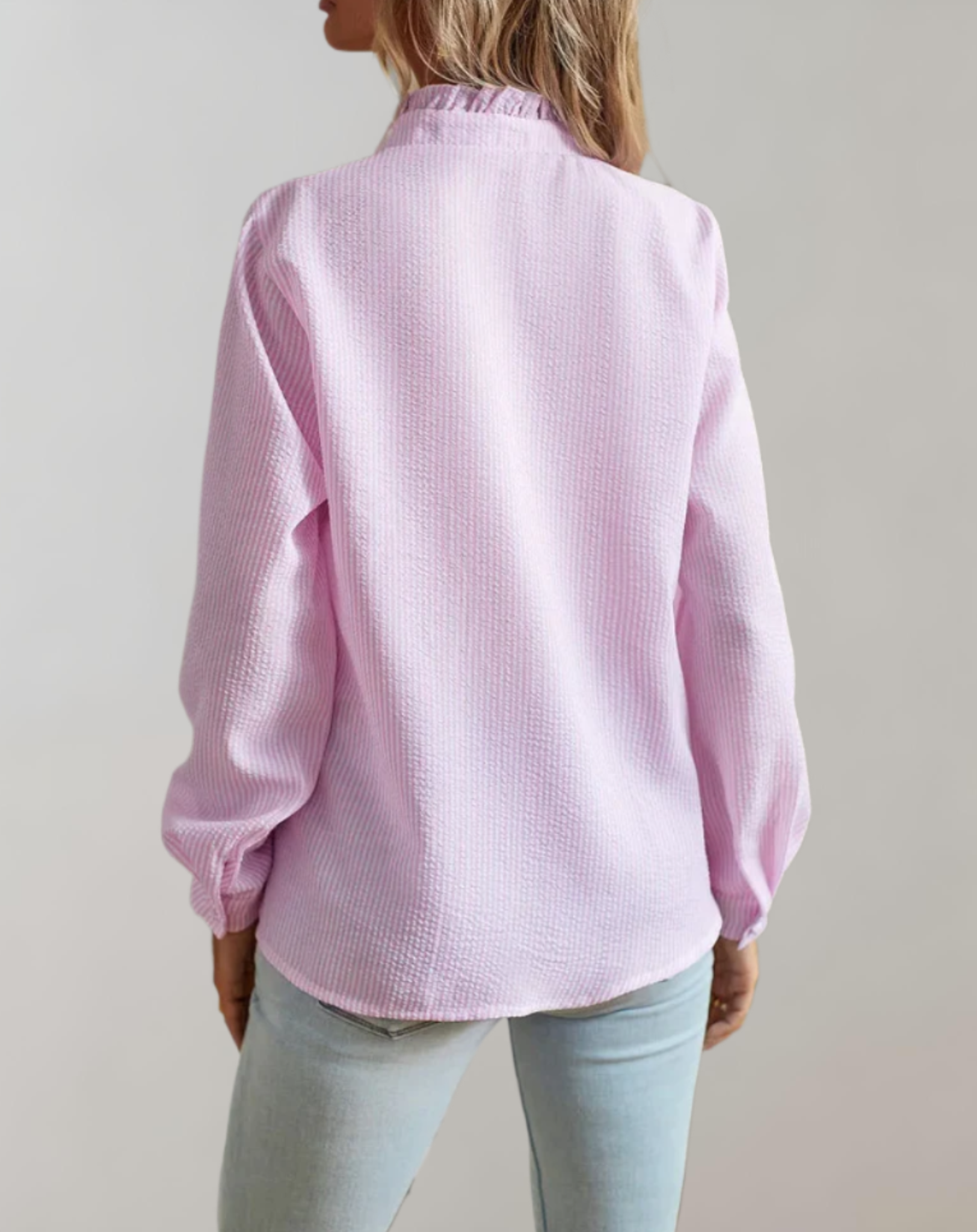 Tilføj et strejf af elegance og komfort til din hverdag med denne smukke lyserøde bluse.