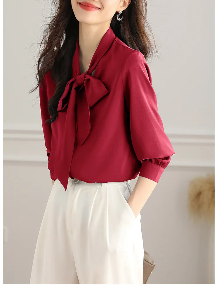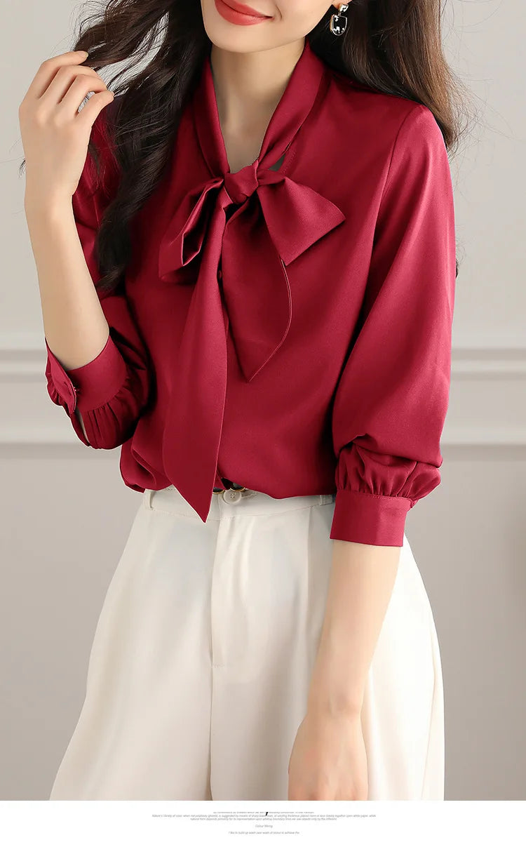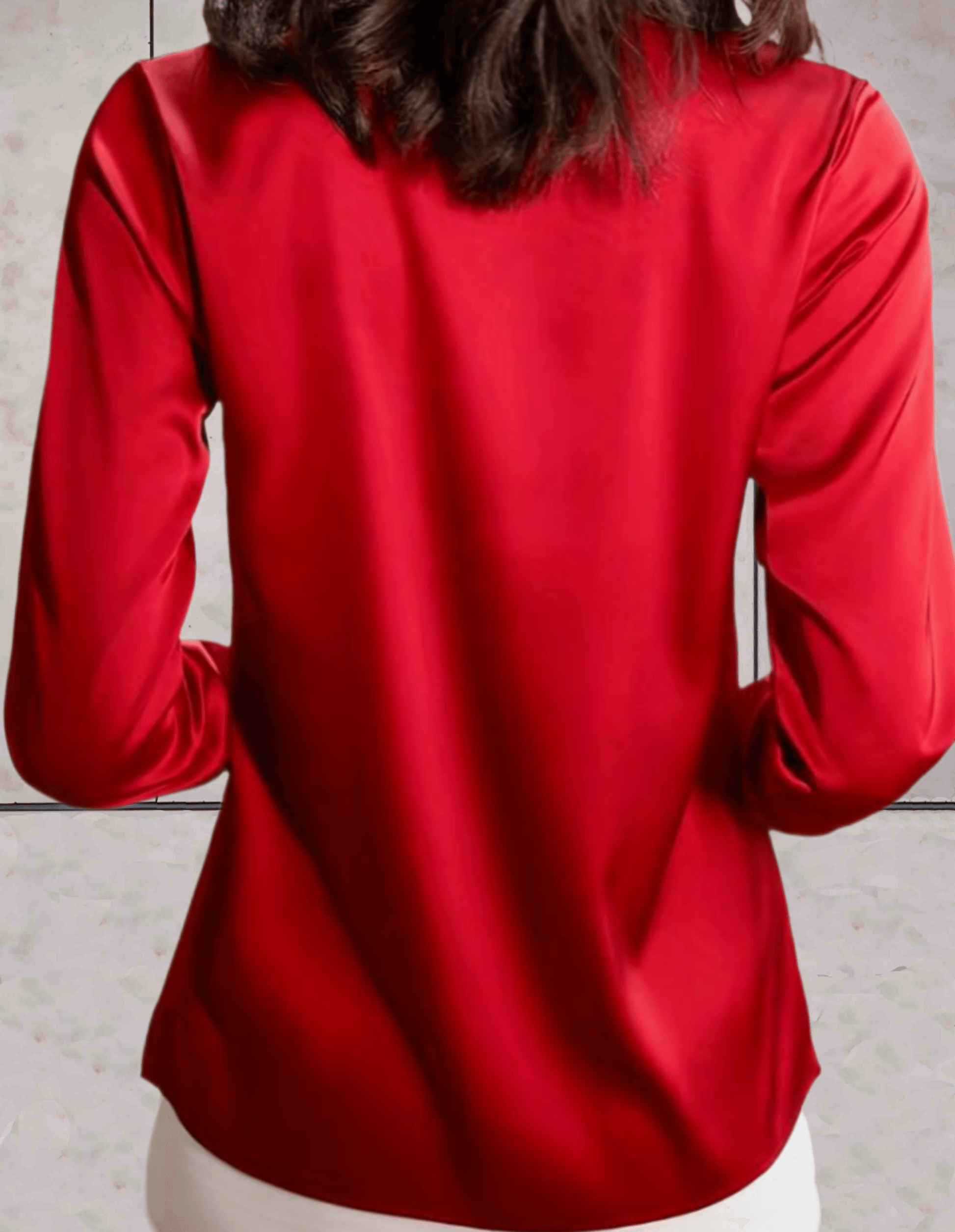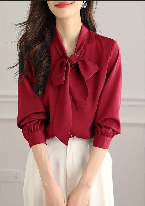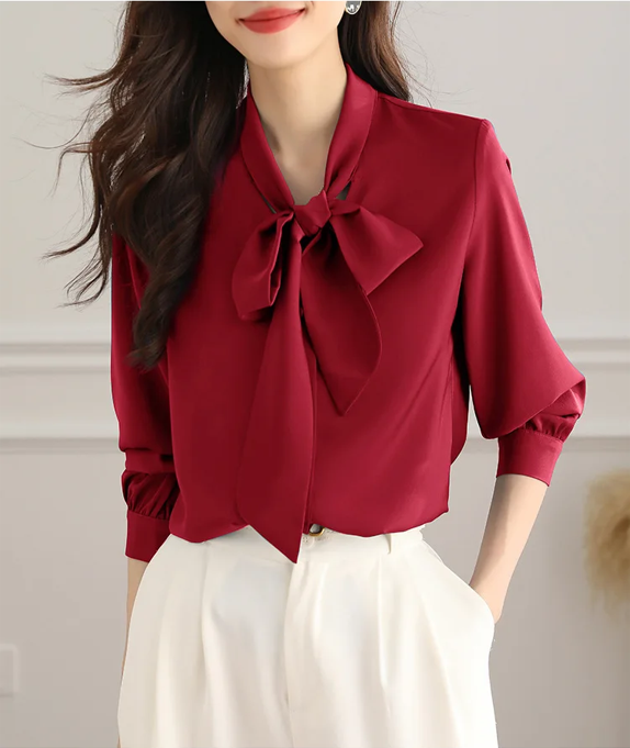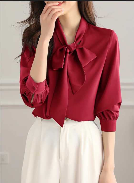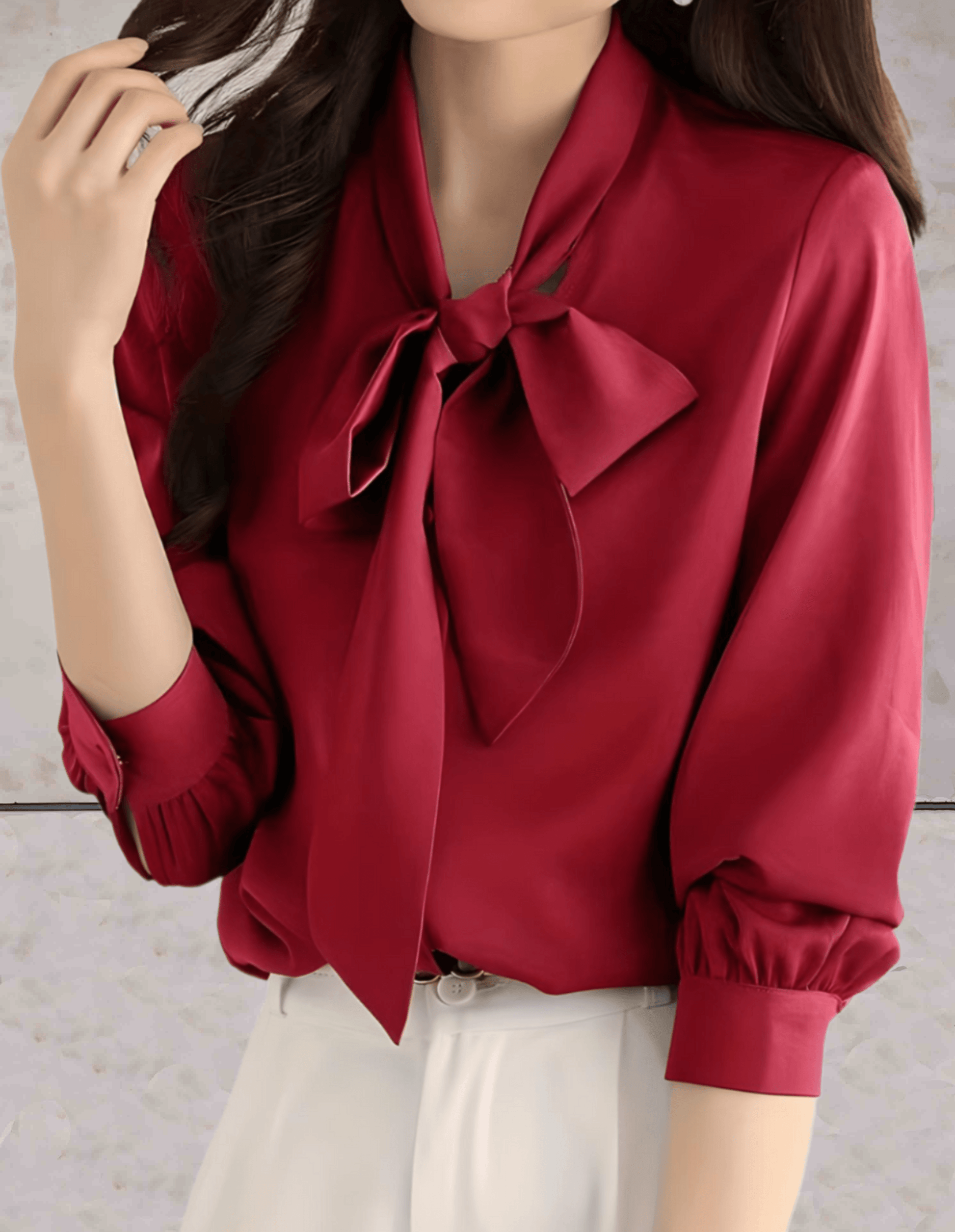 Langærmet top med sløjfekrave tilføjer et feminint og elegant touch til din garderobe. Denne top kombinerer klassisk design med moderne detaljer, perfekt til både hverdagsbrug og mere formelle anledninger.