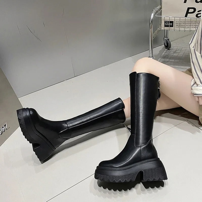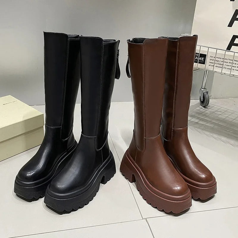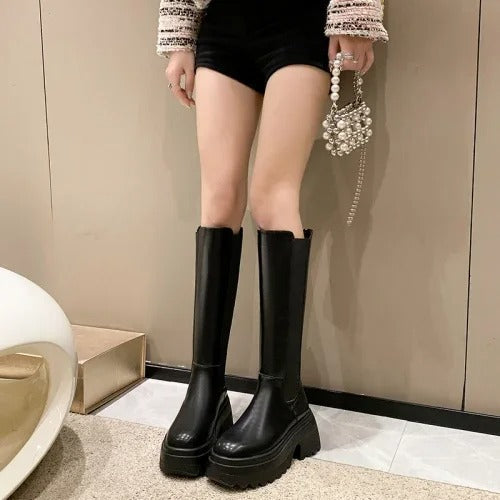 Oplev elegance med vores Lange chunky støvler til kvinder. Disse stilfulde støvletter vil fuldende ethvert outfit og give dig et sofistikeret look. Med et tidløst design og en elegant finish er Lange chunky støvler til kvinder et must-have, som er perfekt til både afslappede og formelle lejligheder.
