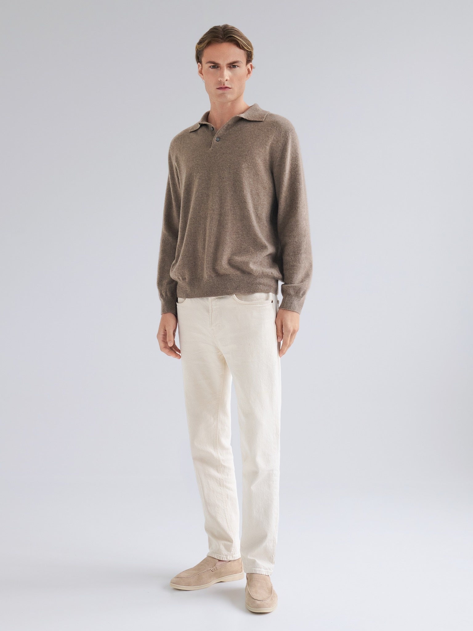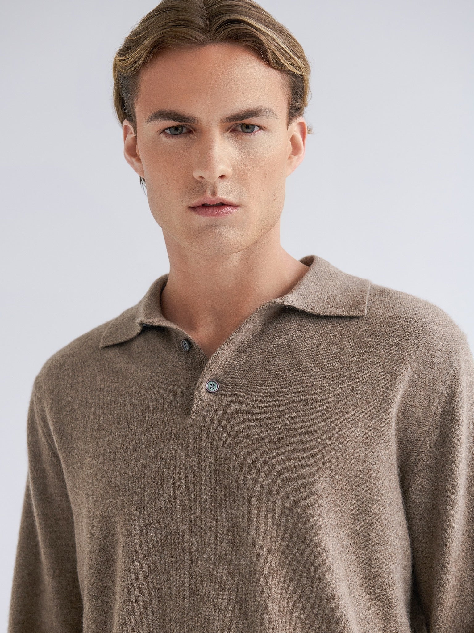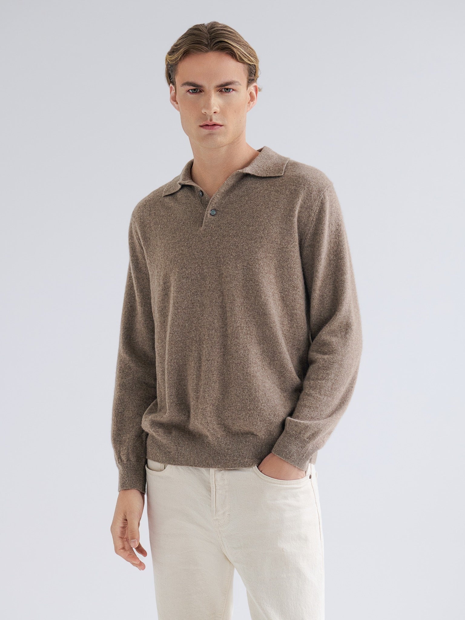 Denne lysebrune kashmir-polo er designet til manden, der ønsker både komfort og stil i ét. Med sit eksklusive kashmirmateriale og klassiske snit bliver den hurtigt en favorit i garderoben – perfekt til både afslappede og mere formelle lejligheder.