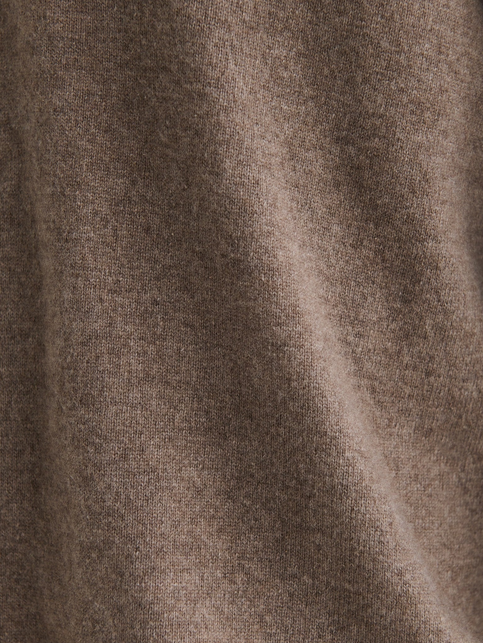 Den bløde, luksuriøse kashmir omslutter dig med varme og komfort, samtidig med at den lette pasform sikrer, at du kan bevæge dig frit hele dagen. Den lysebrune nuance giver et naturligt og elegant udtryk, der passer perfekt til både jeans og finere bukser.