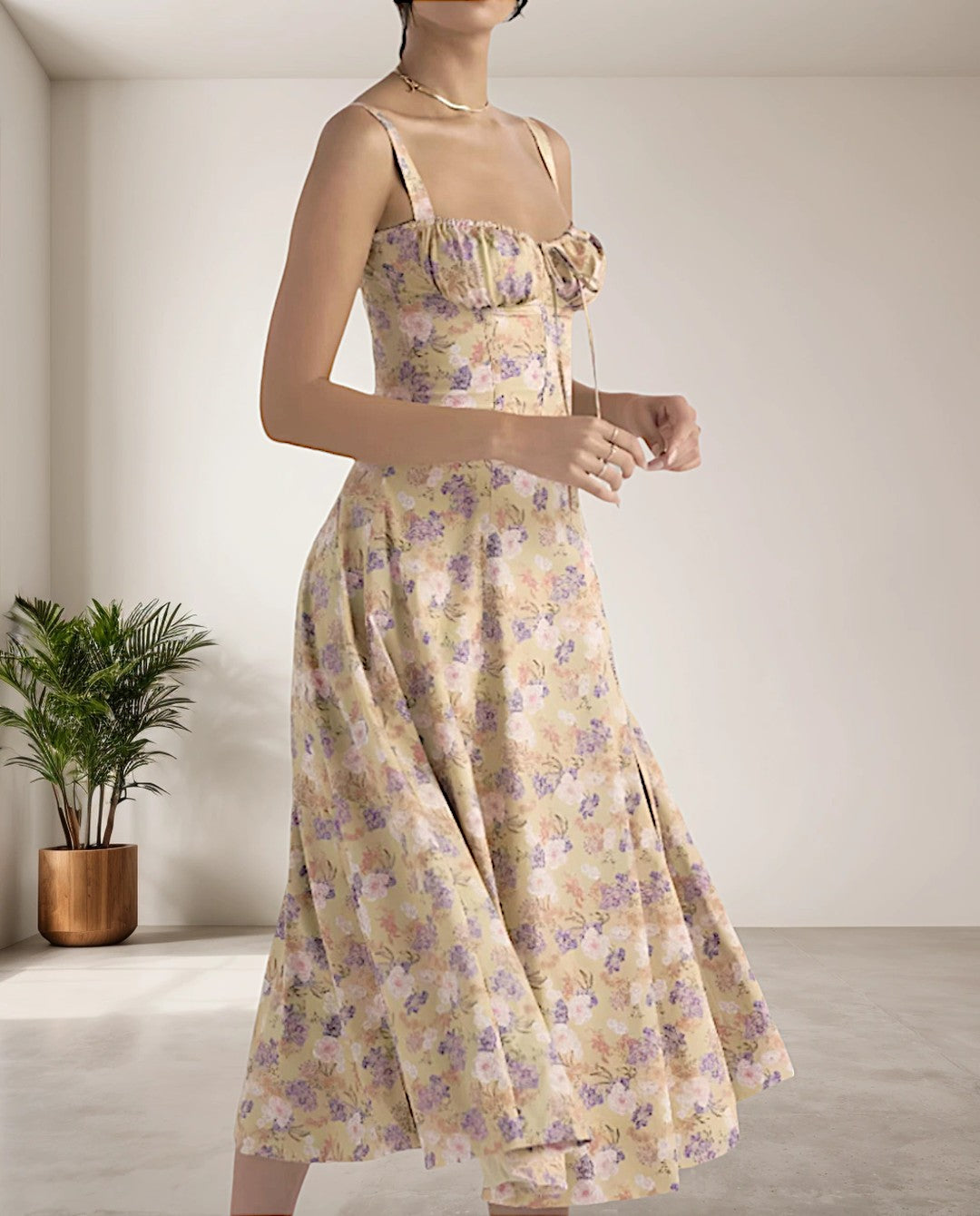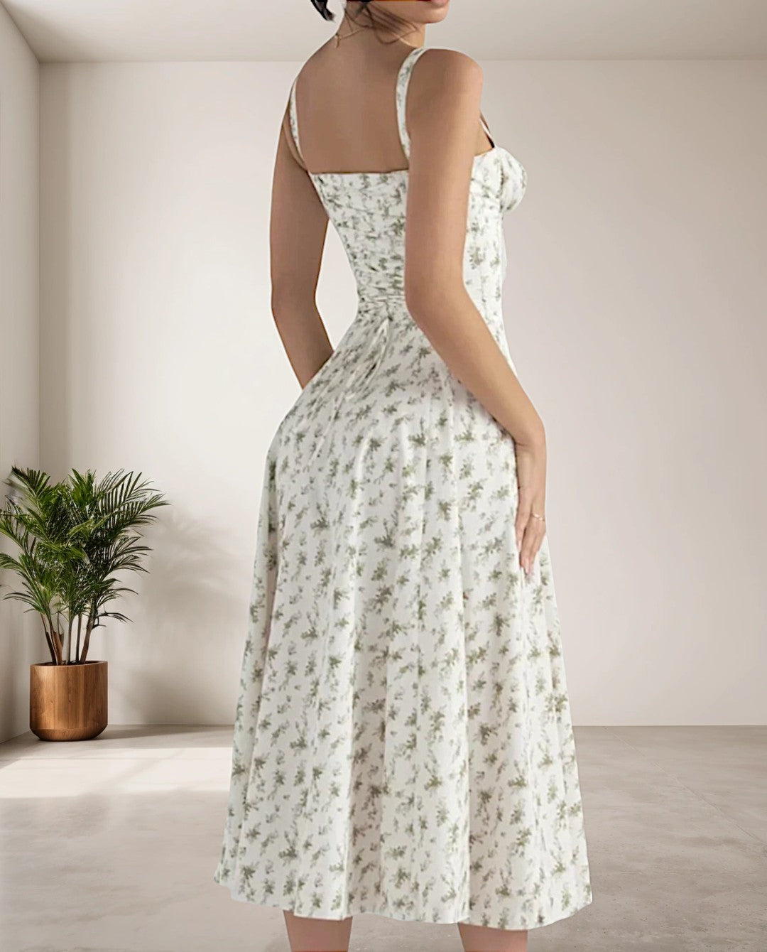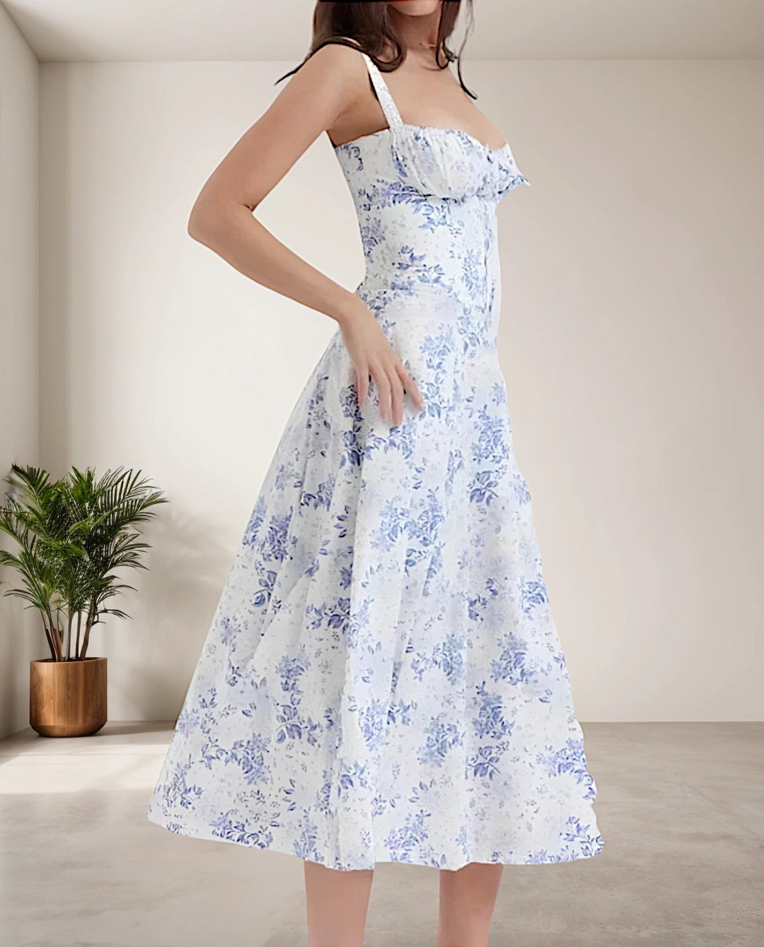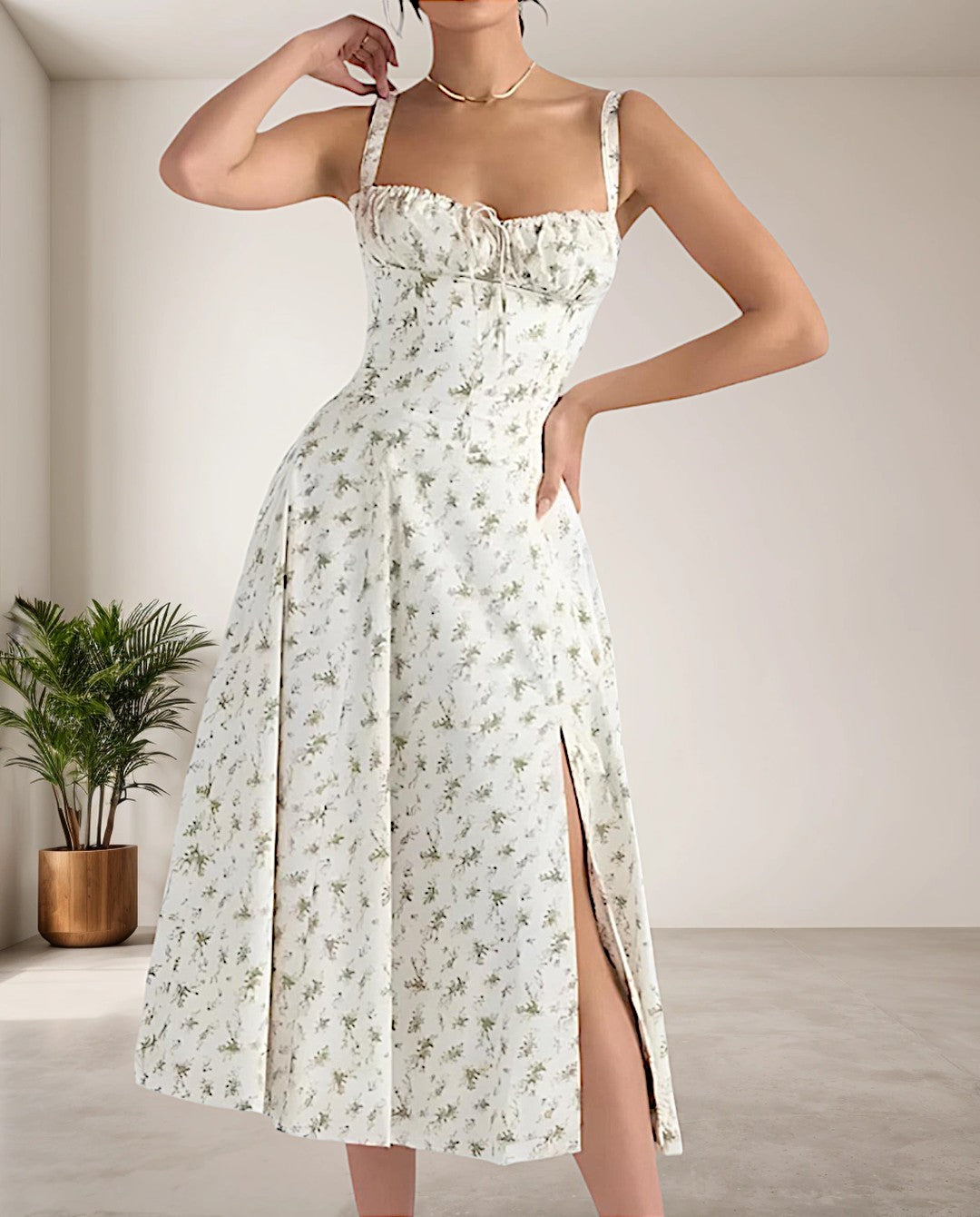 - Feminint udtryk: De fine spaghettistropper giver et elegant, feminint look, mens midi-længden tilføjer klassisk charme med et moderne twist.