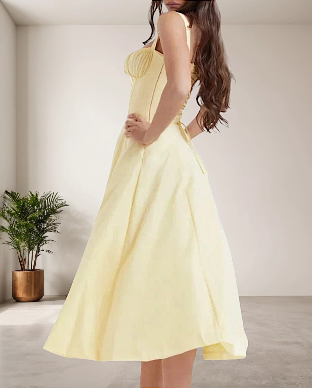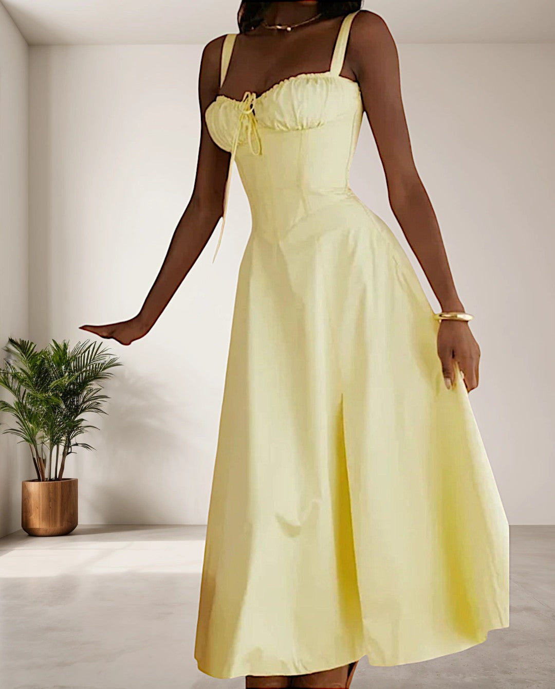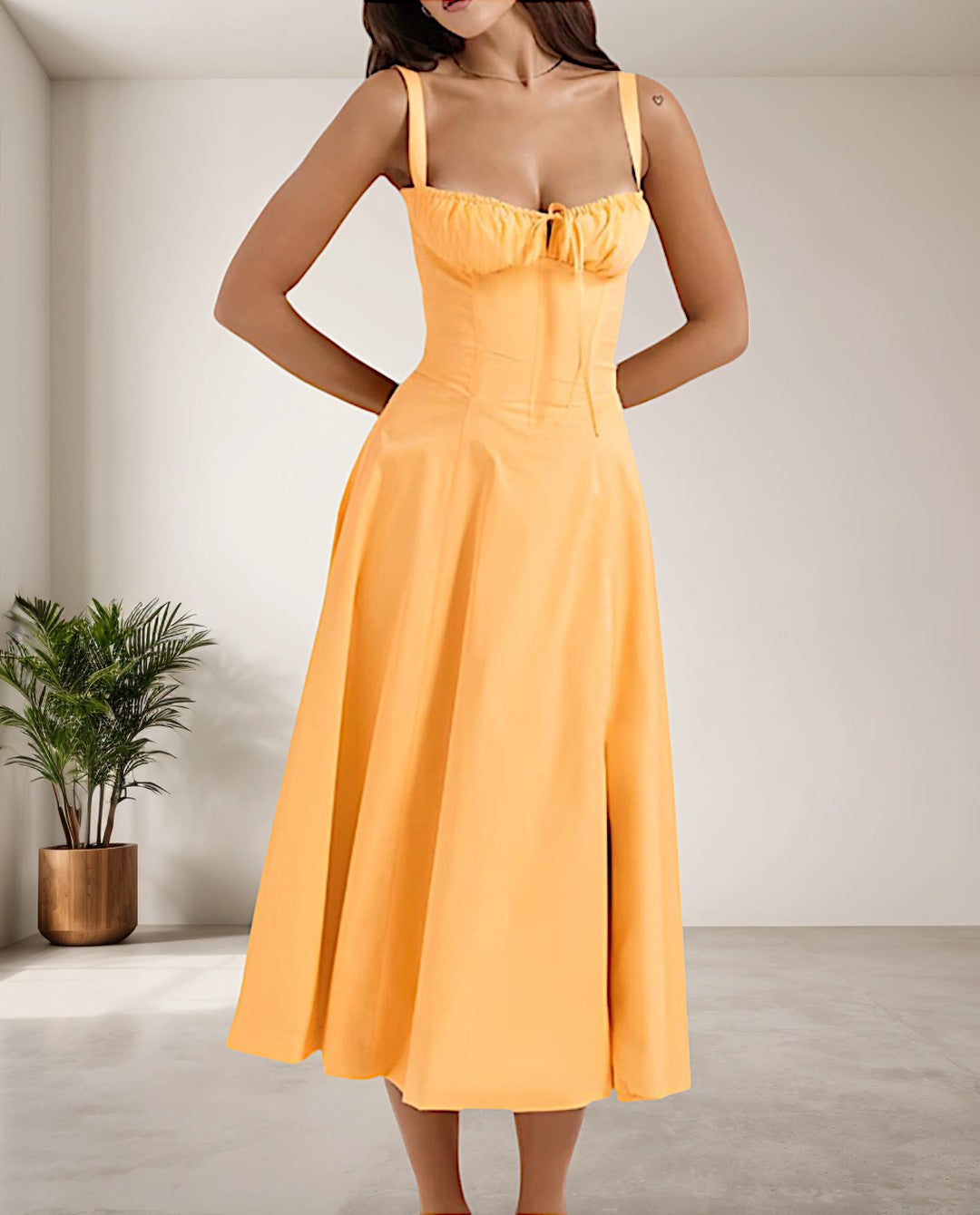 Midi-Kjole med Fine Spaghettistropper og Justerbar Snøre for Perfekt Pasform