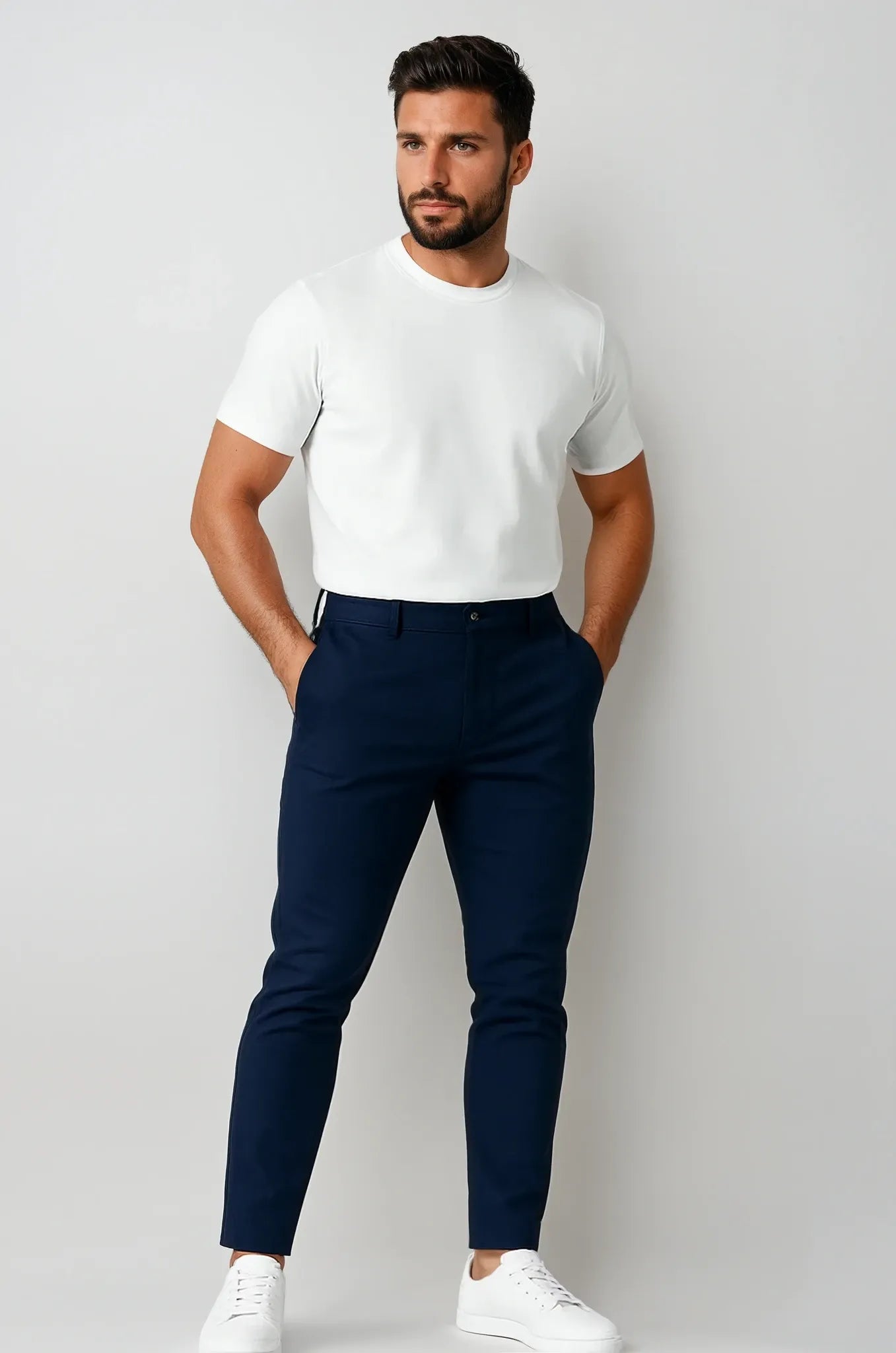 Forestil dig bukser, du kan tage på uden at tænke – og stadig se godt ud. Med Essentielle Bukser vil du føle dig afslappet, selvsikker og klar til både arbejde, café og alt derimellem. De føles lette mod huden og bevæger sig med dig – uanset tempoet på din dag.