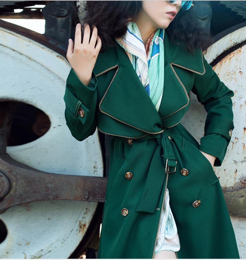 Mørkegrøn dobbeltradet ultra-lang frakke