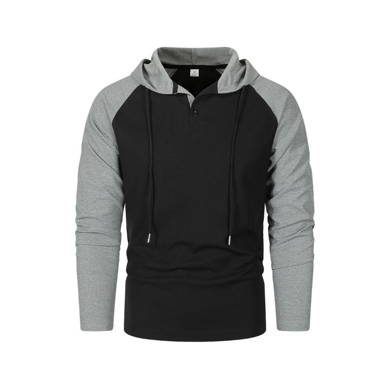 Afslappet langærmet T-shirt i vaffelstrik til mænd med hætte