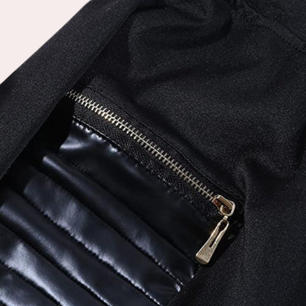 Oplev den ideelle weekendstil med vores komfortable damebukser, der øger din selvtillid og fremhæver din figur. Bukserne har fleksible knæ og elastiske sidepaneler for en behagelig pasform, mens guldfarvede lynlåse på forlommerne tilføjer et strejf af elegance.