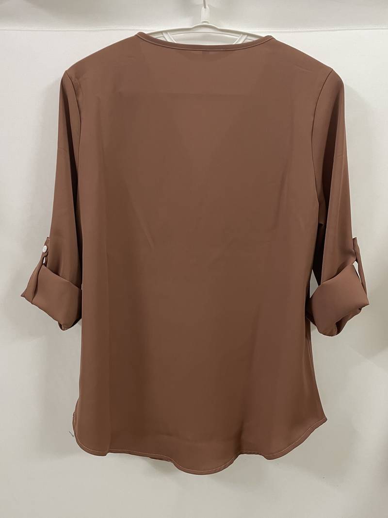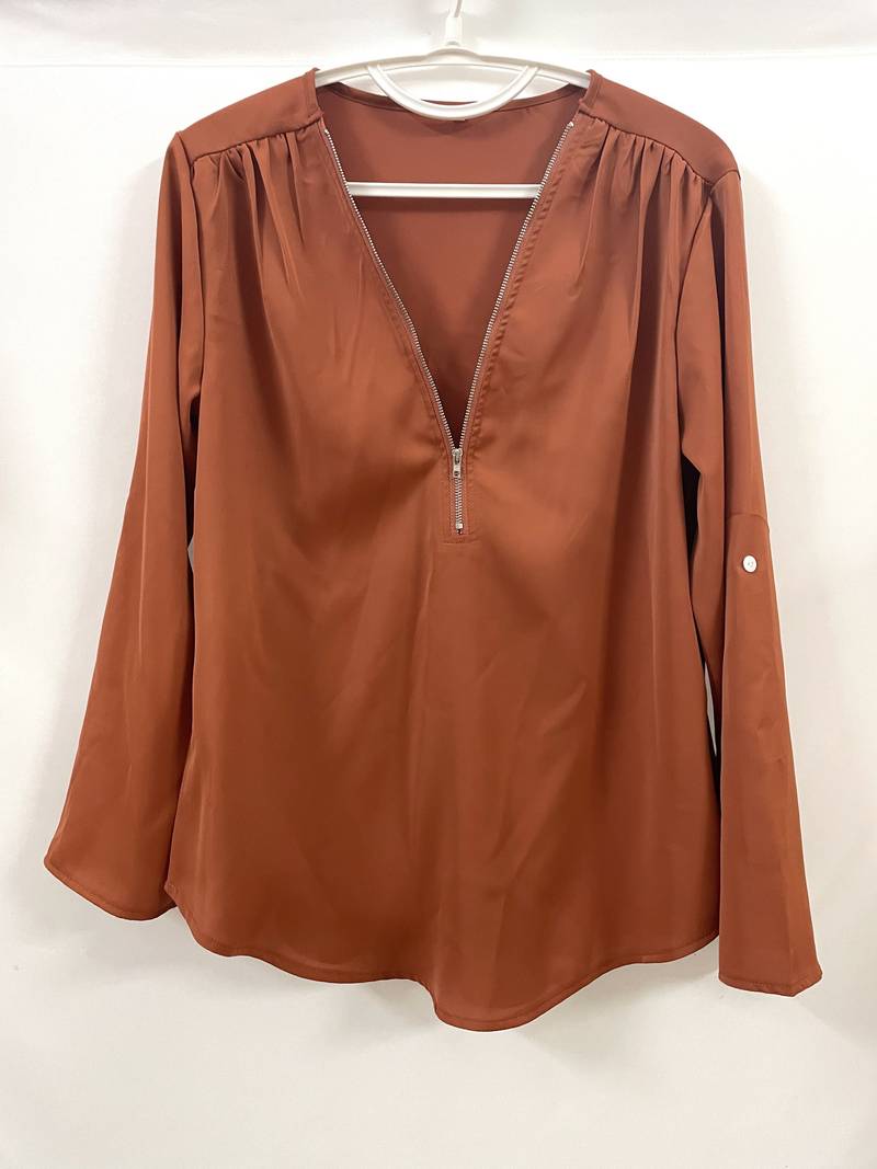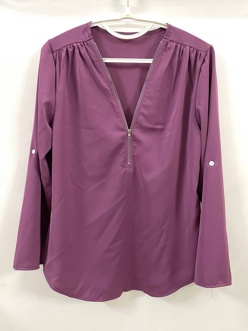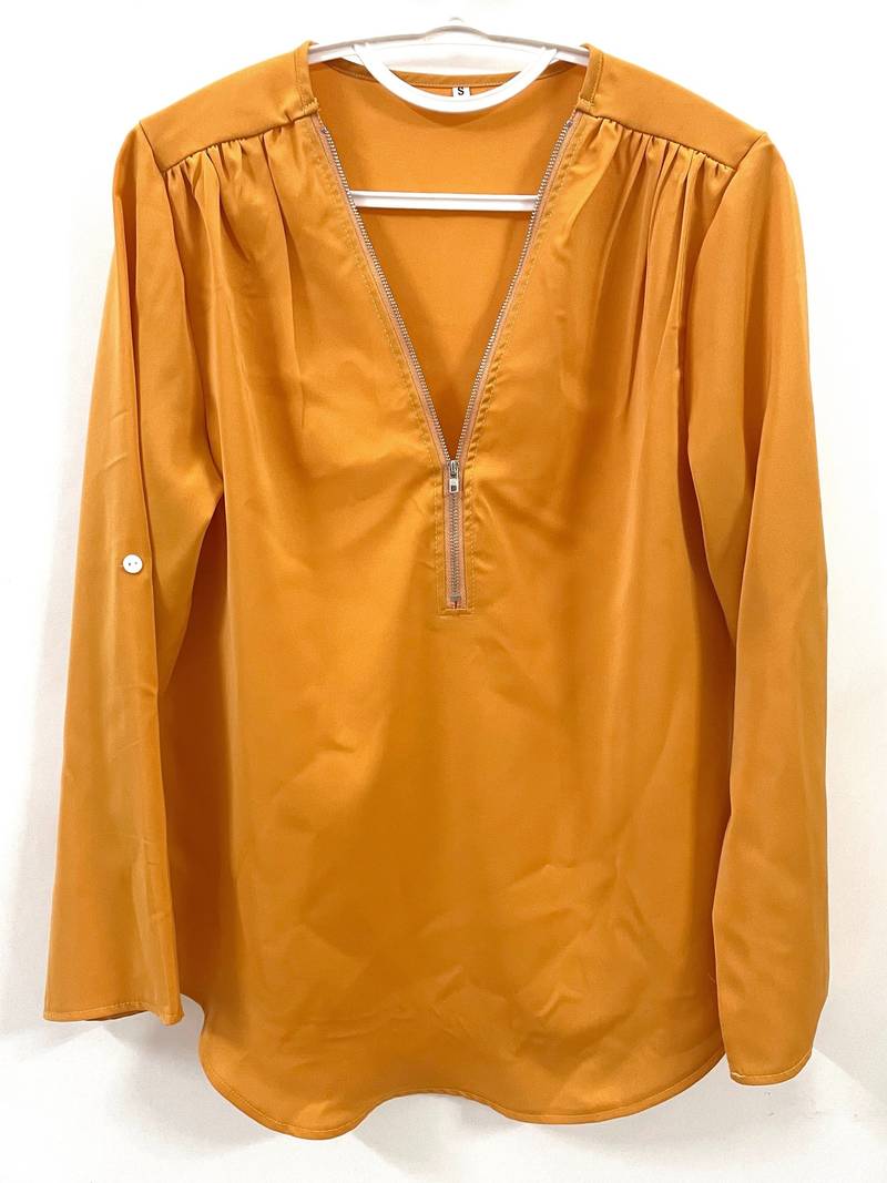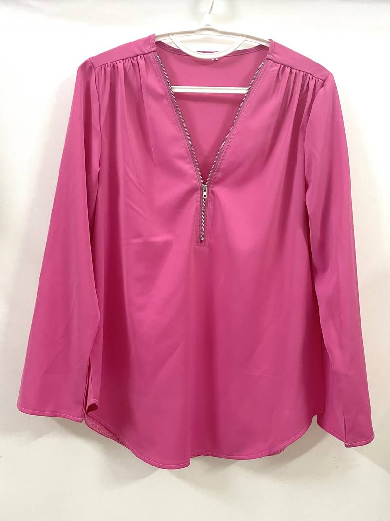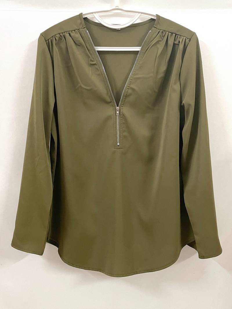 Opdater din hverdagsgarderobe med denne afslappede bluse, der har smukke flæsedetaljer, rulleærmer og en halvt lynlåsåbning ved halsen. Den er både stilfuld og alsidig, perfekt til enhver lejlighed, og kombinerer komfort med et strejf af elegance. Uanset om du er på farten eller mødes med venner, vil denne bluse tilføje et afslappet og elegant præg til dit look.