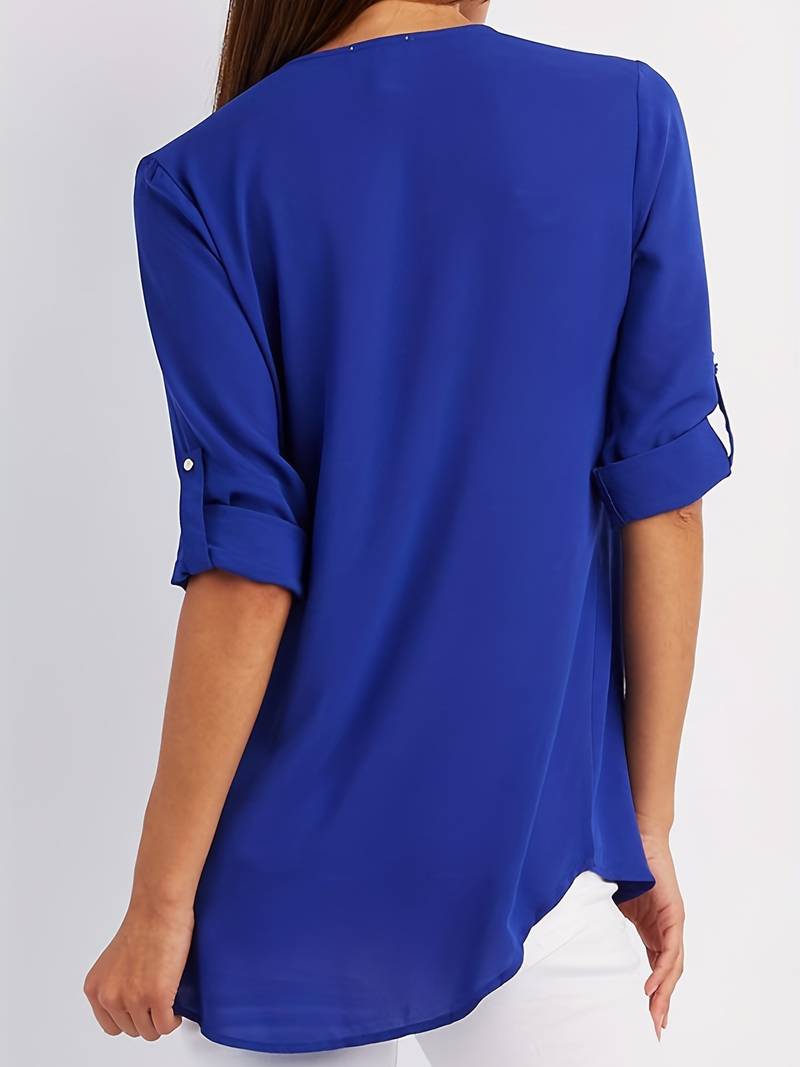 Casual, rynket bluse med oprullede ærmer til kvinder