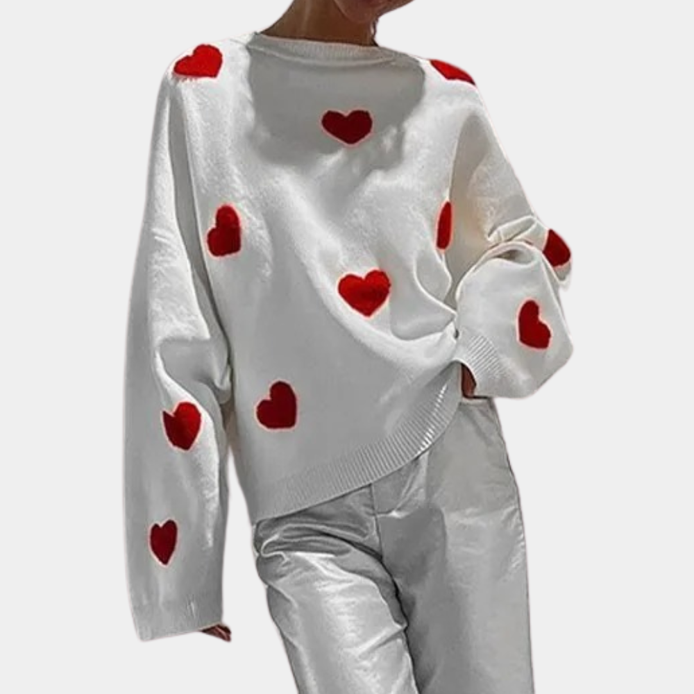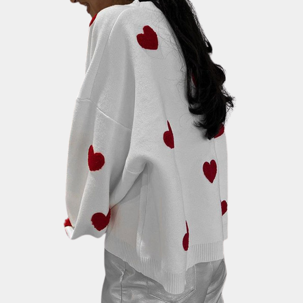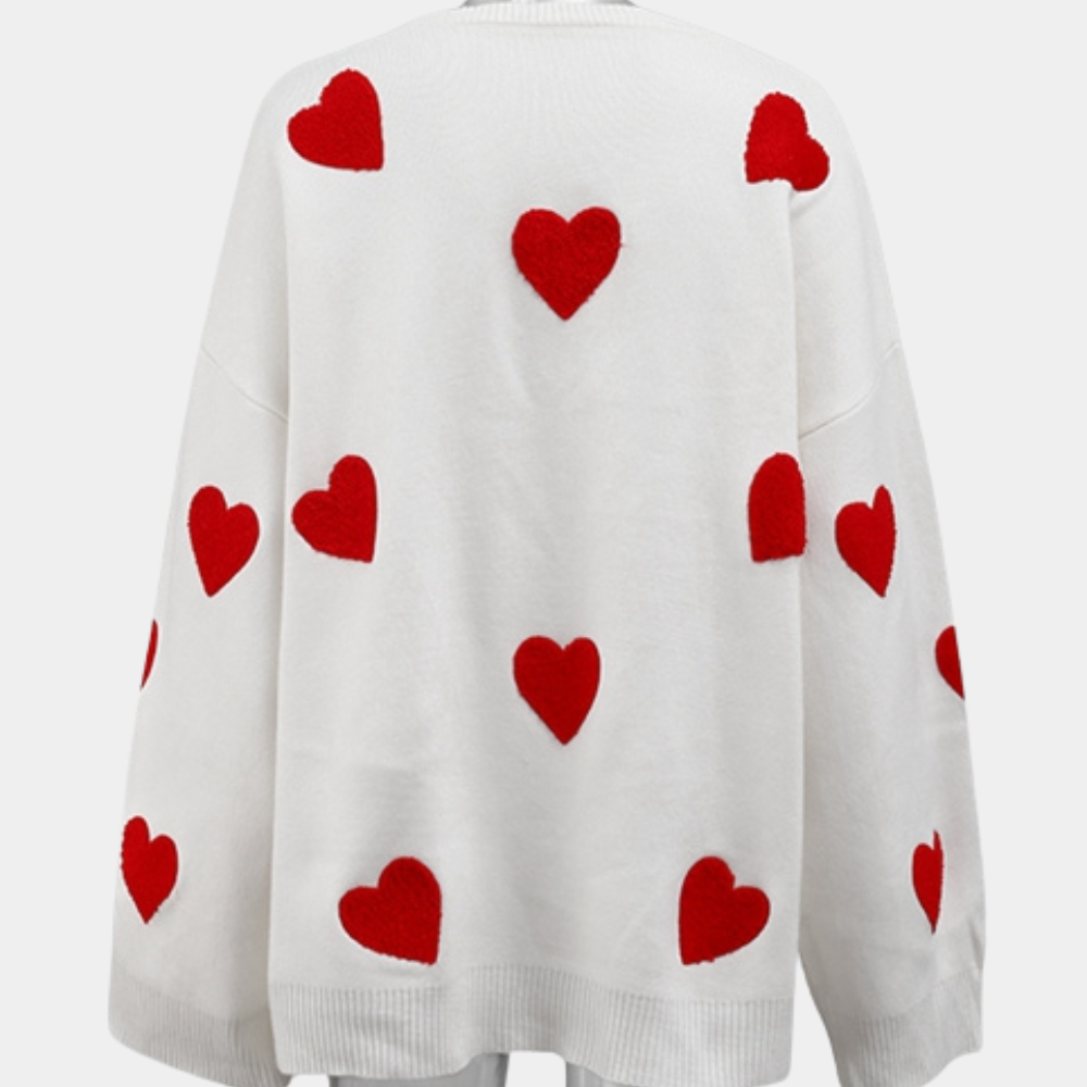 Kombiner hjertetrøjen ubesværet med dine yndlingsjeans eller en hyggelig nederdel, og skab et alsidigt look, der passer til forskellige lejligheder!