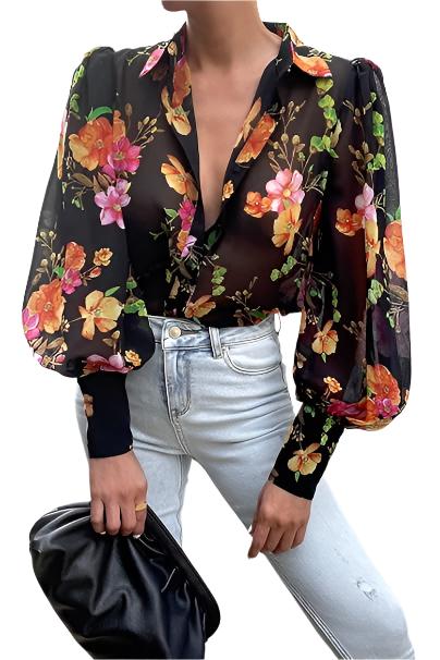 Den-toppen med blomsterprint giver dig et legende og sofistikeret udtryk, perfekt til at bringe lidt liv ind i din hverdag. Med sine elegante pufærmer og V-hals fremhæver denne top en smuk silhuet og er ideel til et friskt og levende look. Det lette stof gør den til et behageligt valg til hverdag.