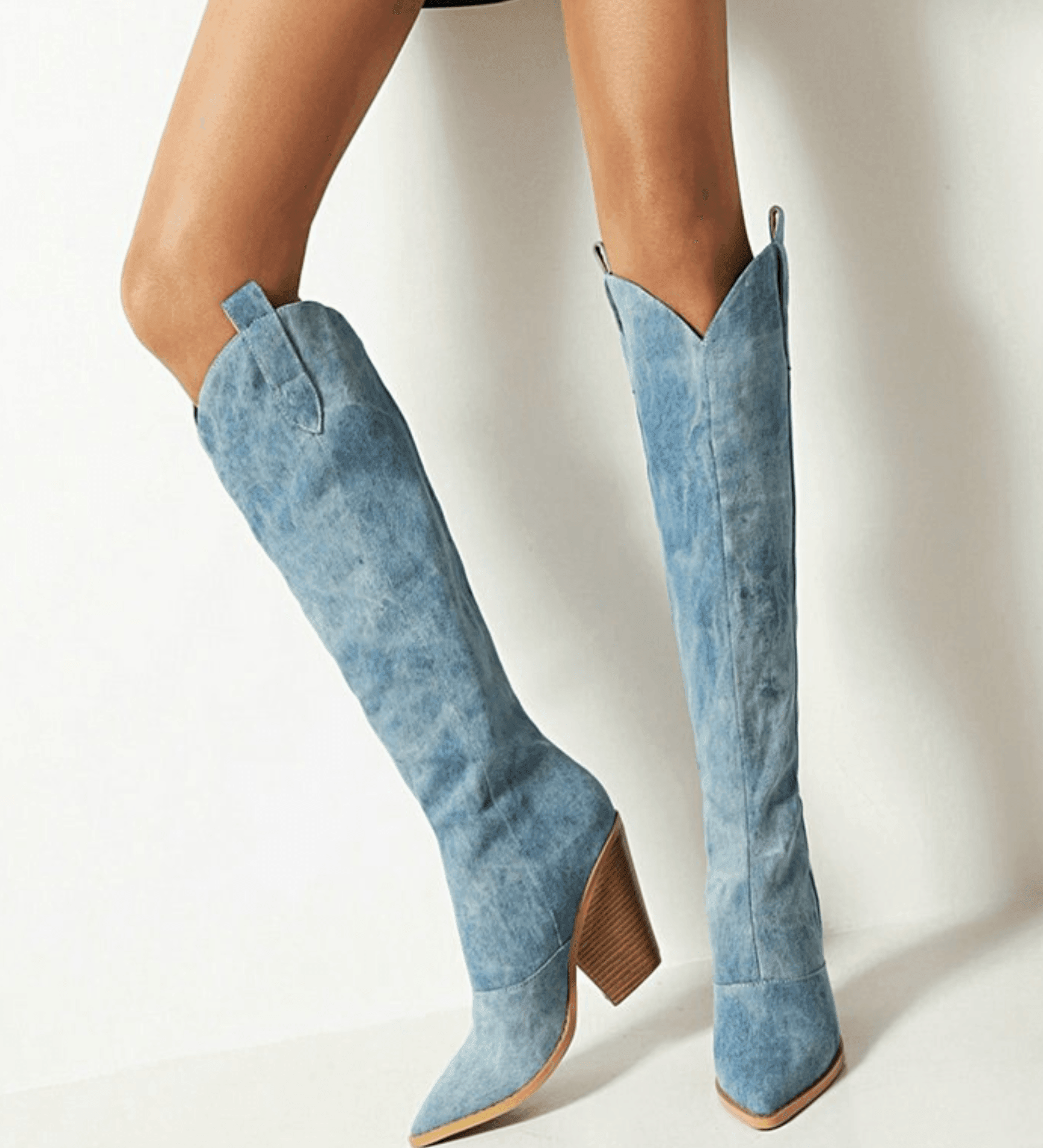 Elegante Knæhøje Støvler i Ruskindslook i Lys Blå til Damer