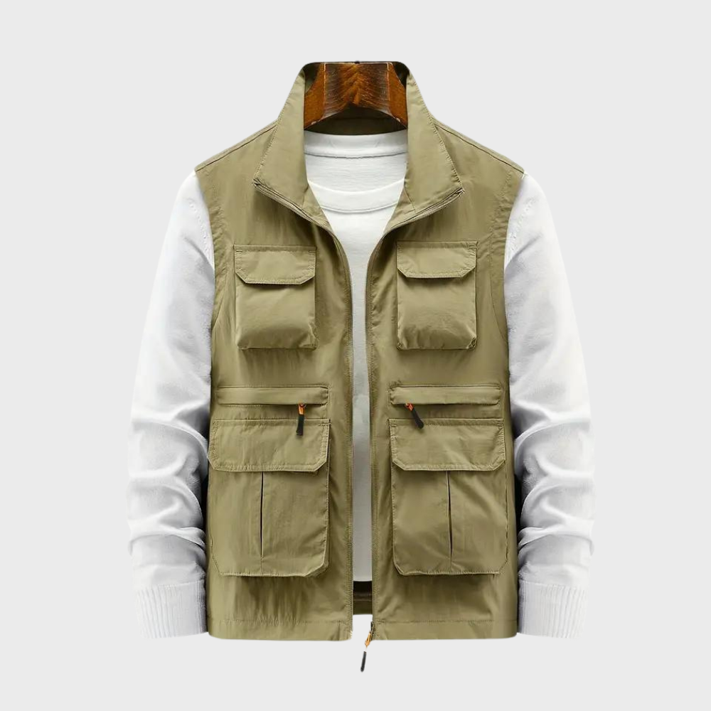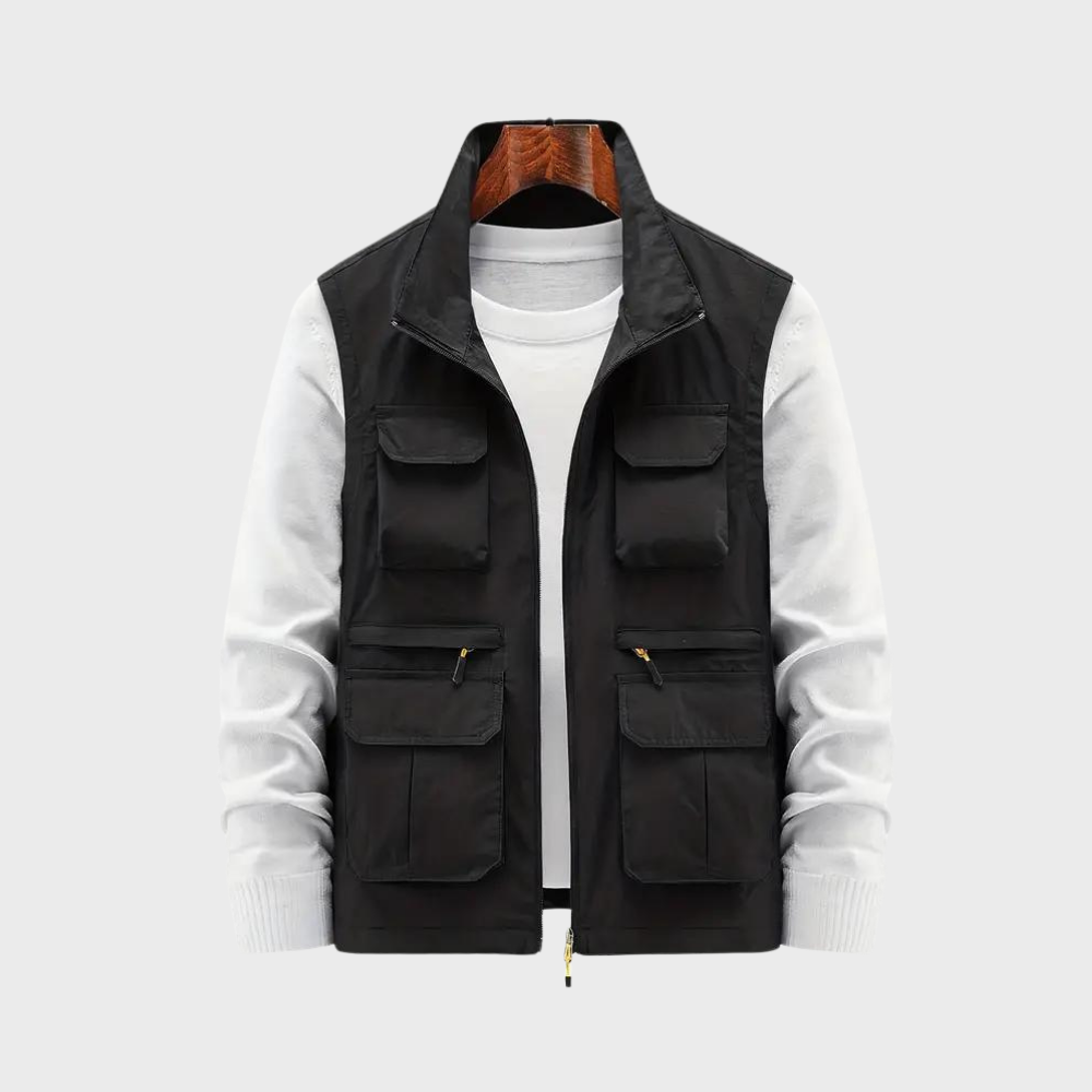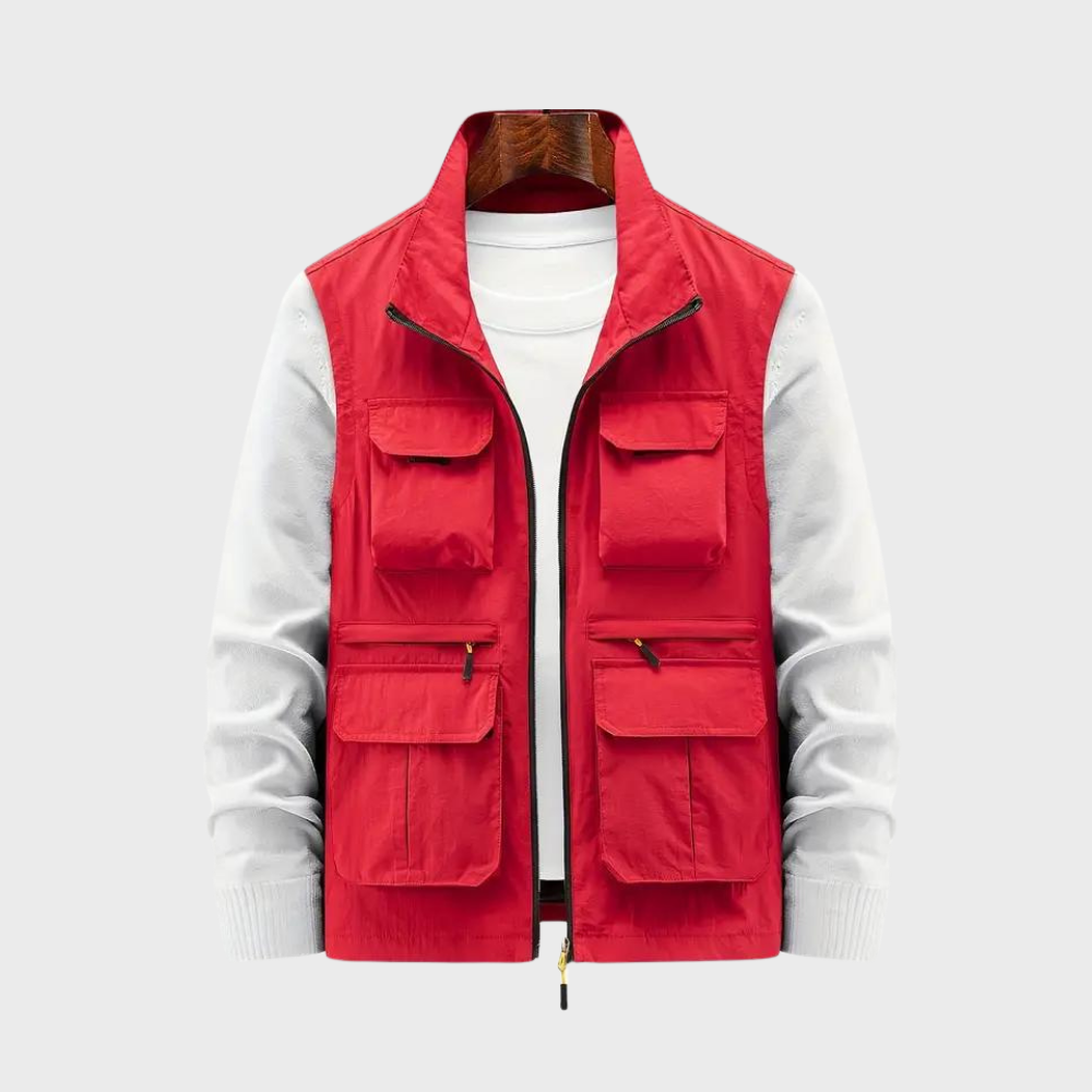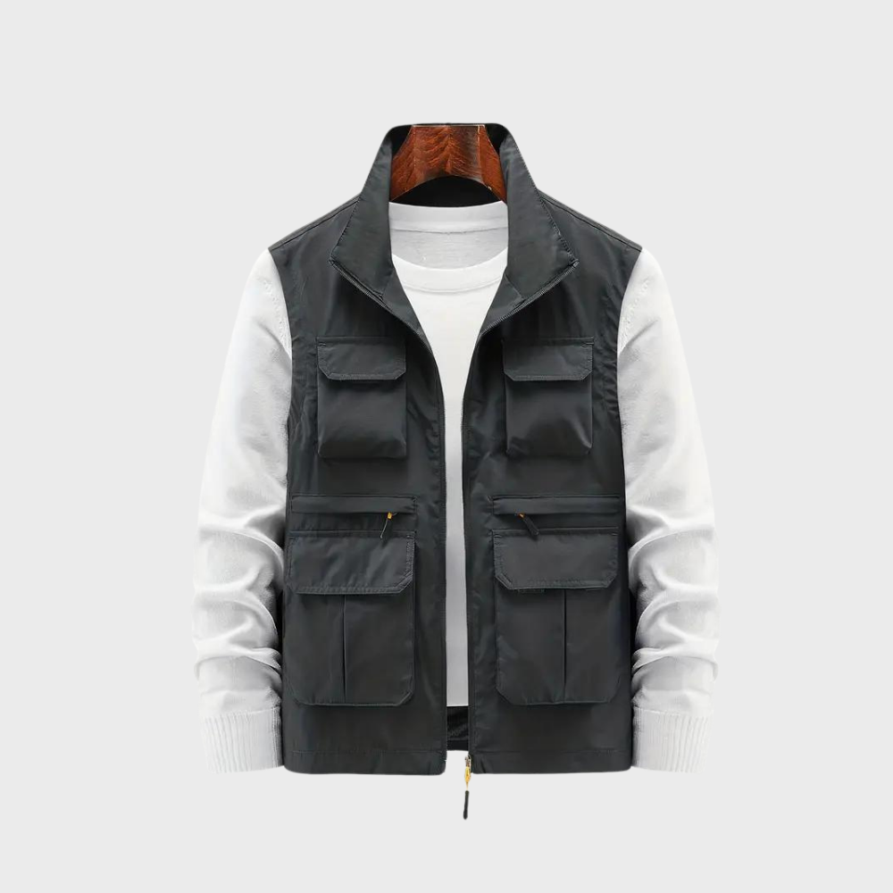 Her er vores herrevest med flere lynlåslommer. Dette vest er både komfortabel og stilfuldt, perfekt til både udflugter og afslappede stunder derhjemme. Lavet af et behageligt materiale, der egner sig til forår, efterår og vinter.