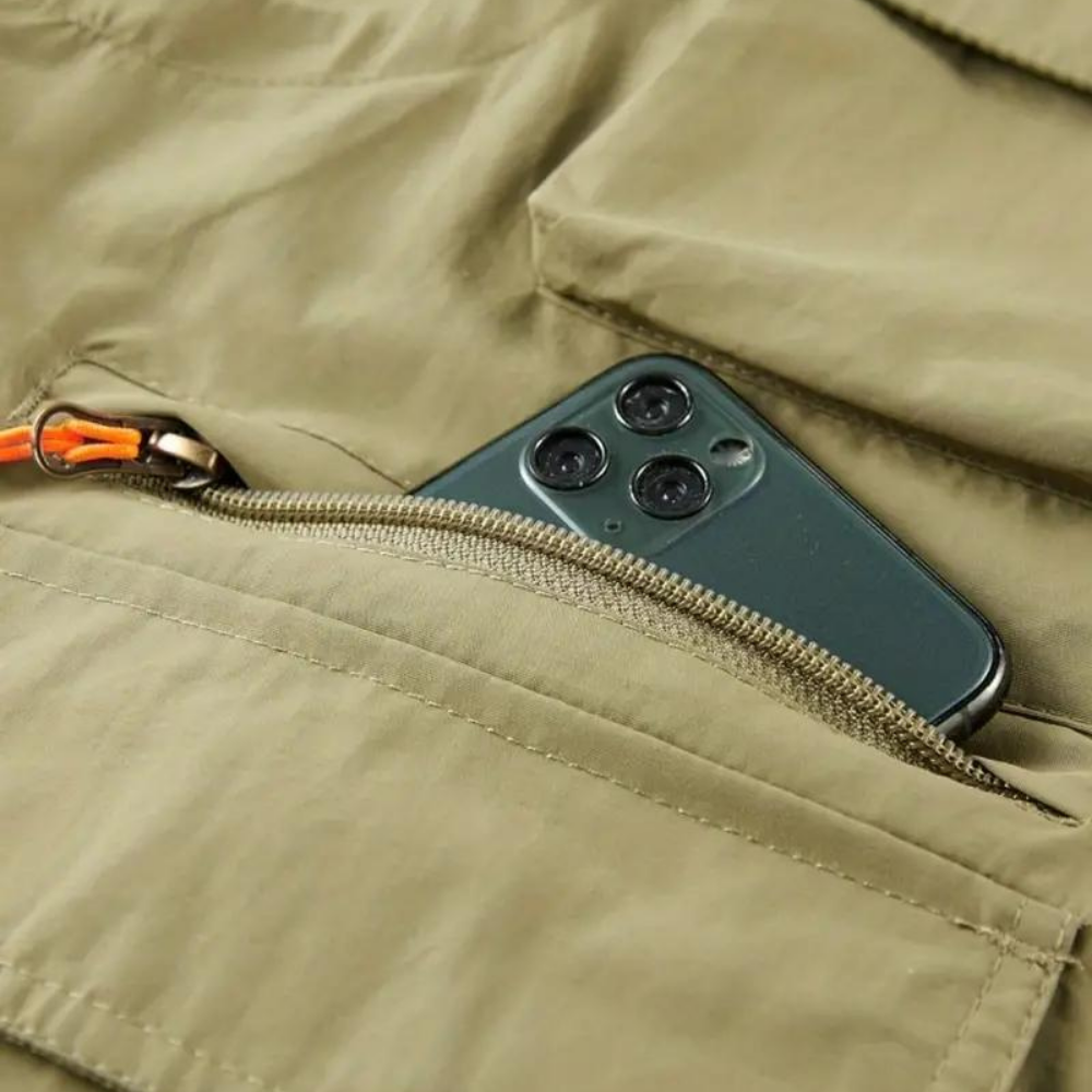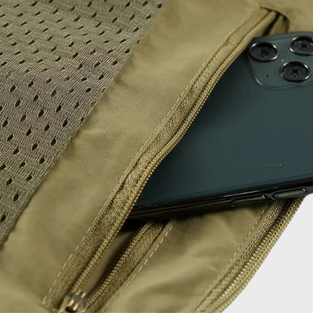- Flere lynlåslommer: Praktisk og funktionelt design til opbevaring af småting, der samtidig tilføjer et moderne touch.