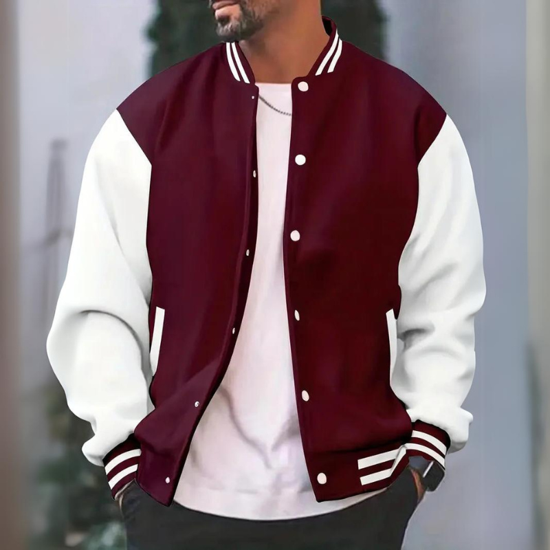 Klassisk bomberjakke i kontrastfarve med ribbede manchetter og trykknapper til mænd