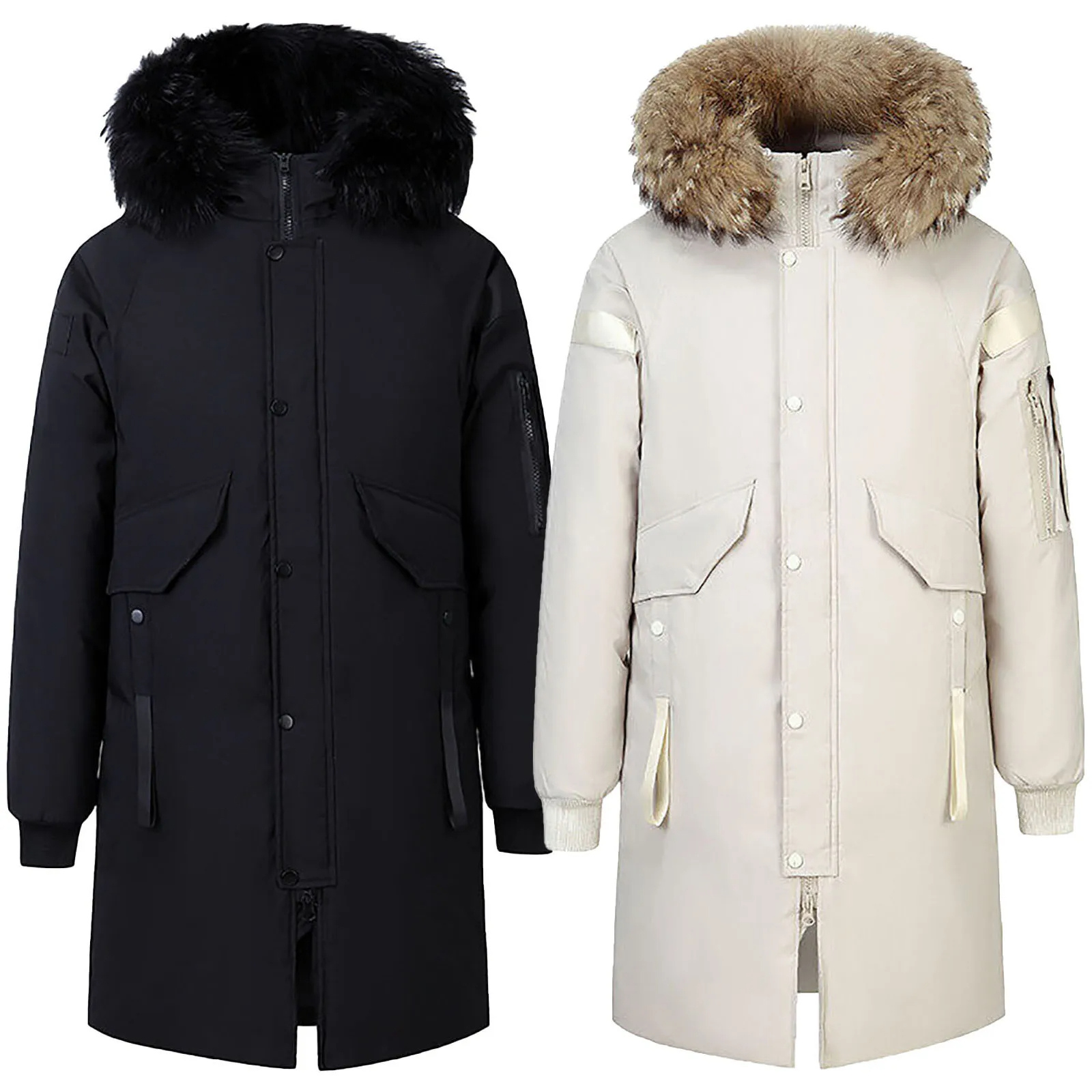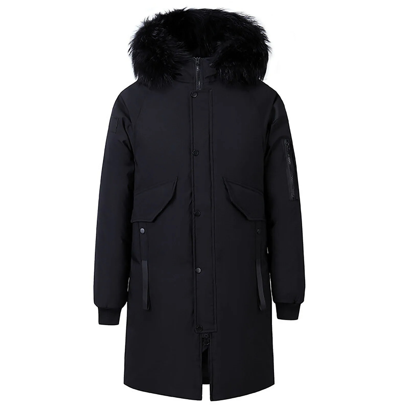 Parka vinterfrakke til mænd med pelshætte og knaplukning