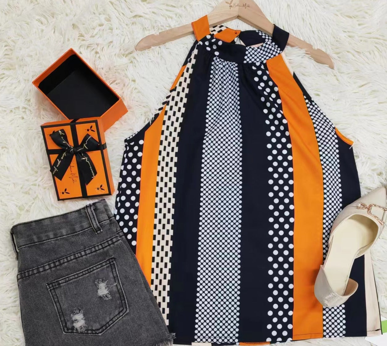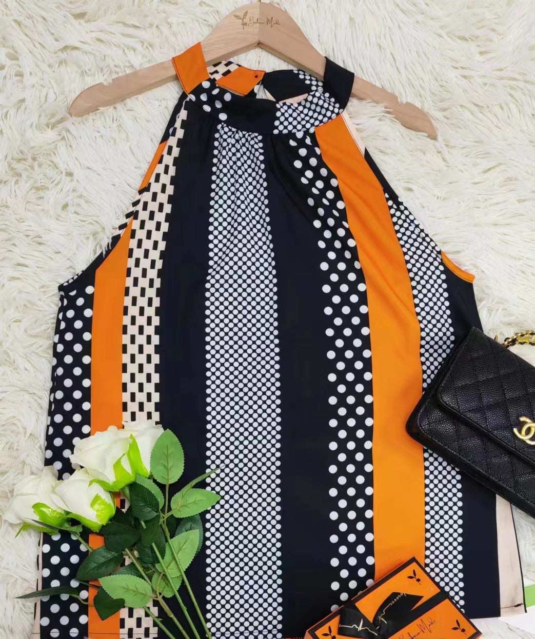 Bring retro charme ind i din garderobe med den ærmeløse, printede top!