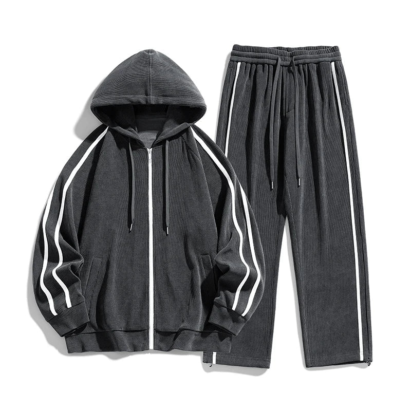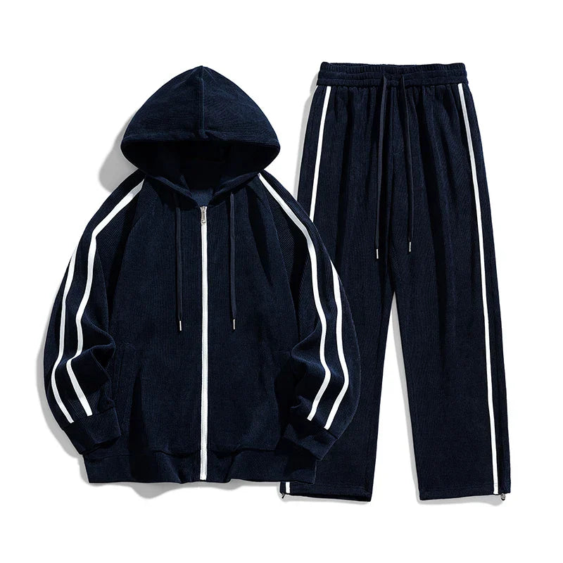 Sporty og afslappet træningsdragt i letvægtsfløjl til mænd