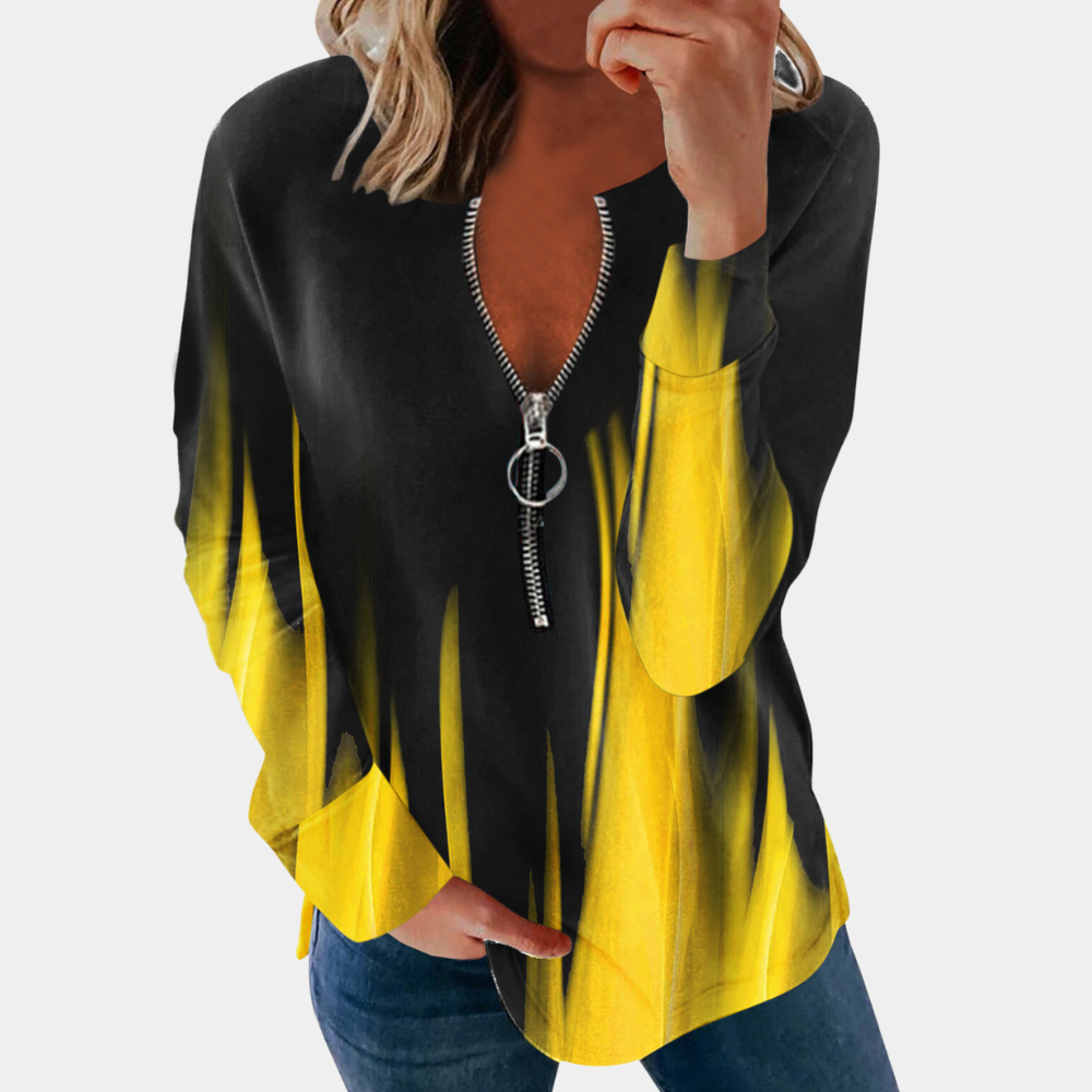 Forbedr din efterårs- og vintergarderobe med vores dame-trøje med halv lynlås.