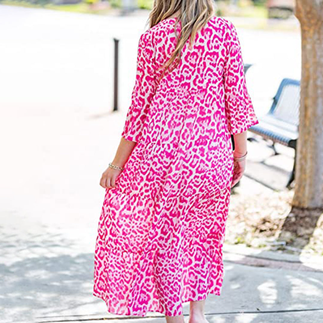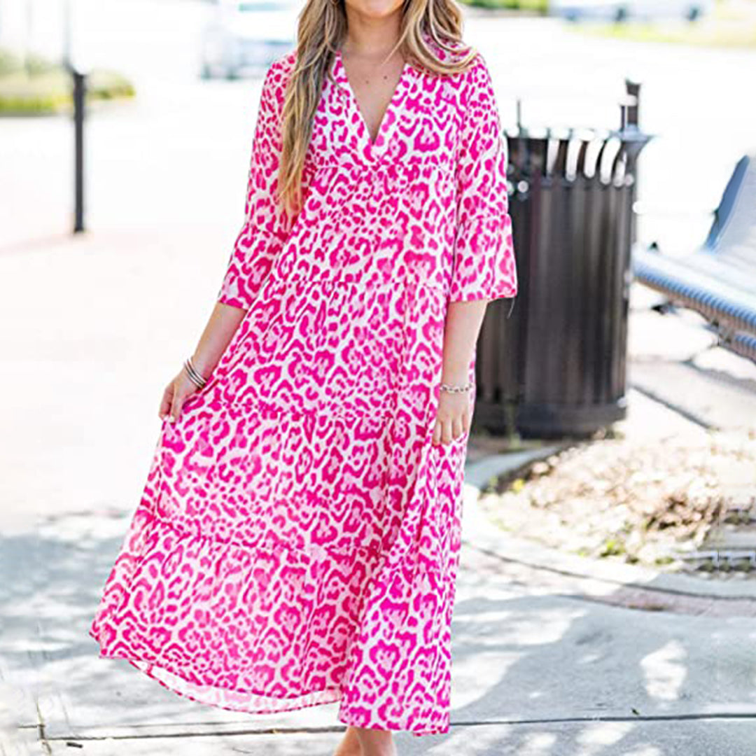 Det elegante design er både stilfuldt og opsigtsvækkende, perfekt til sommerens farverige og lette mode. Opdater din garderobe med denne smukke kjole, ideel til varme dage.