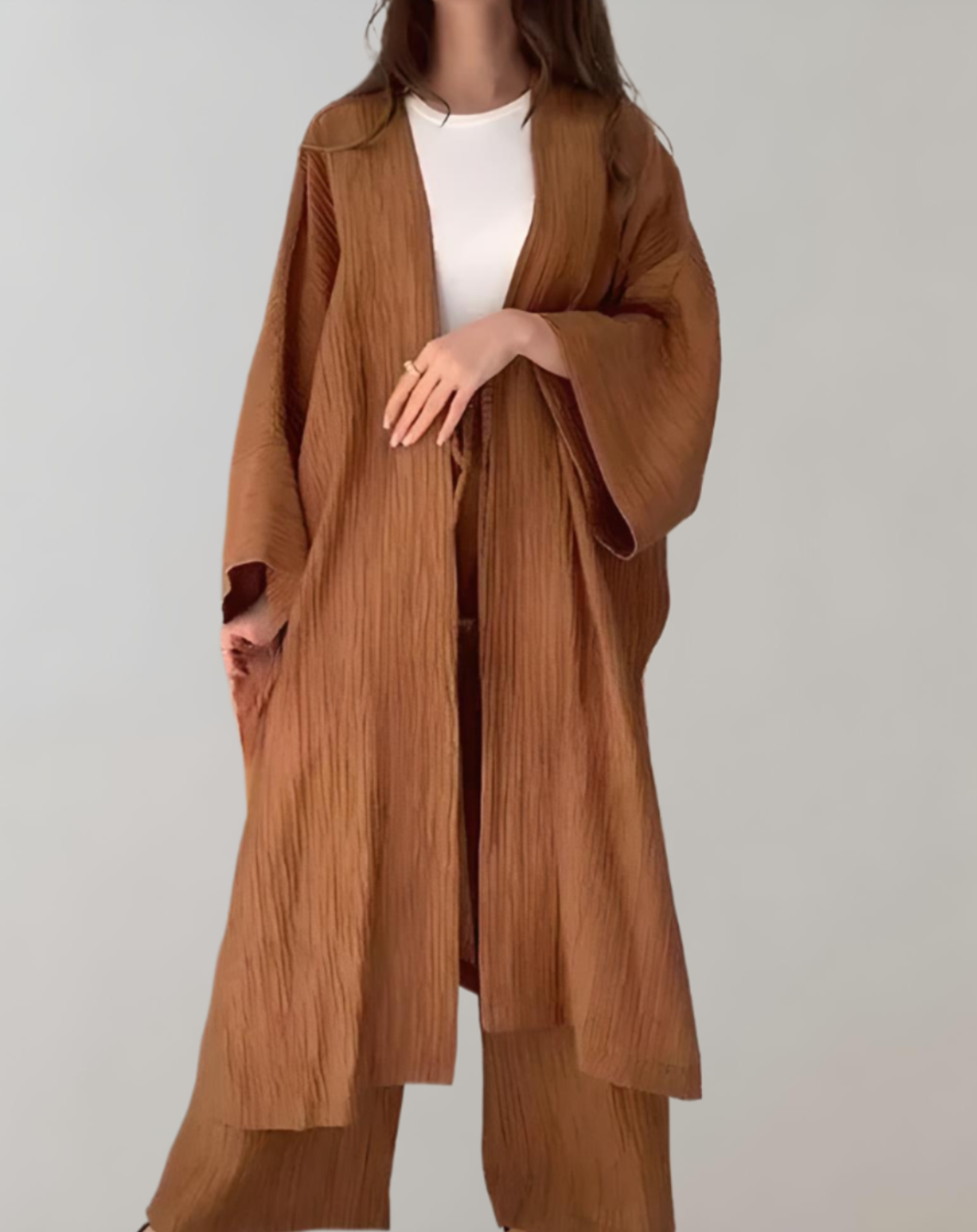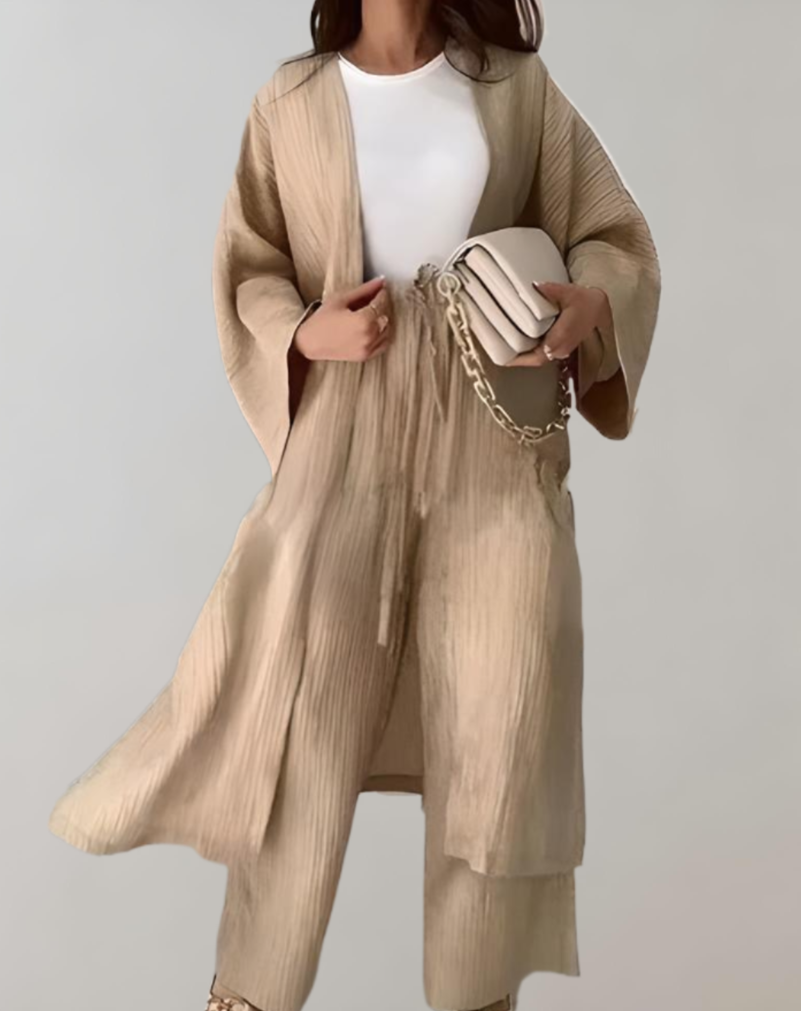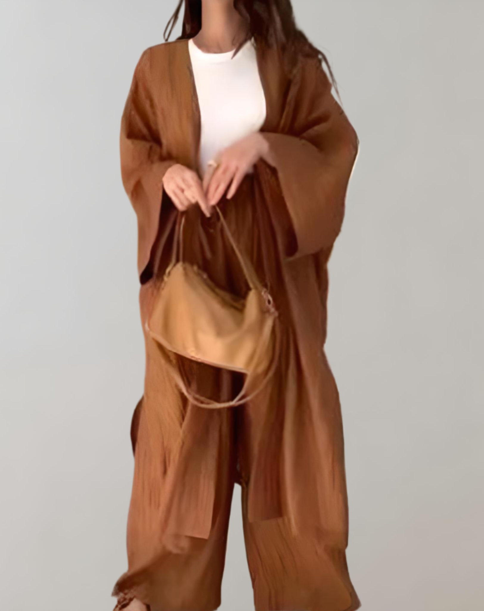 Magisk Elegance: Stilfuldt 2-delt Sæt med Lang Vest og Vide Bukser