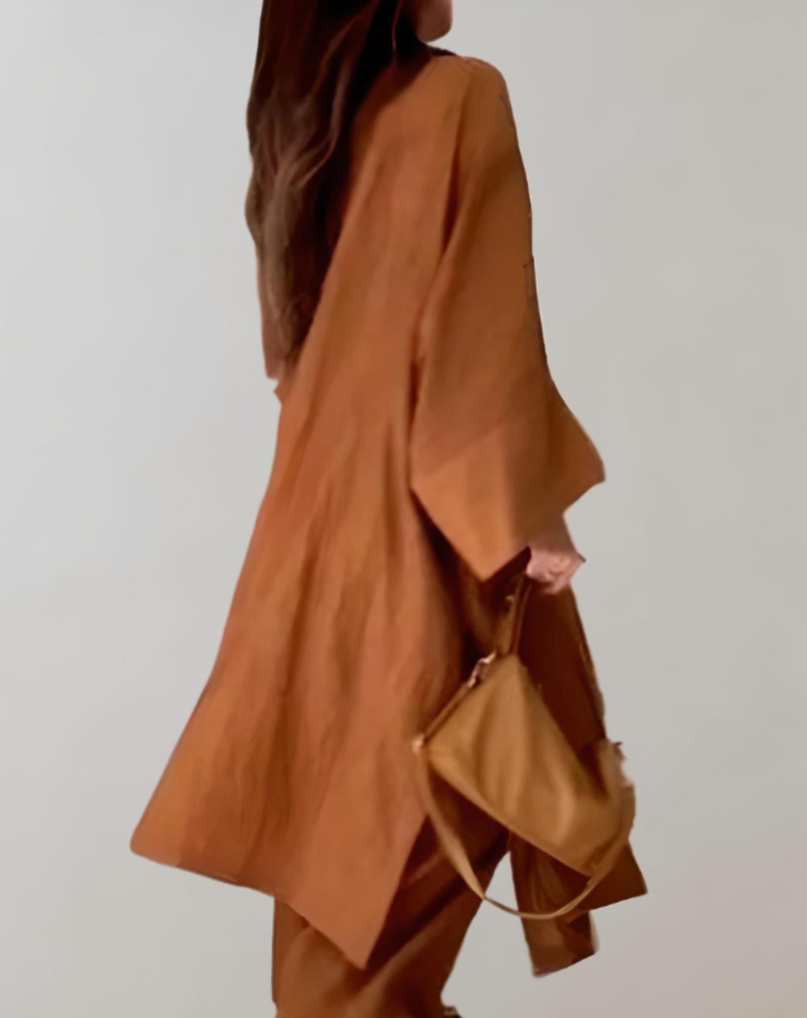 Stilfuldt 2-delt sæt med lang vest og brede bukser til kvinder